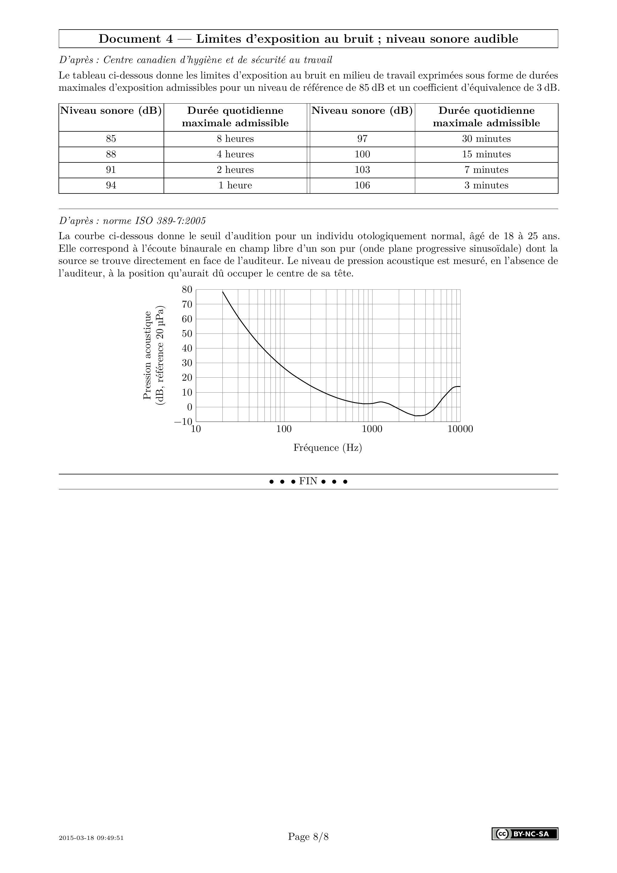 Document 4 - Limites d'exposition au bruit ; niveau sonore audible