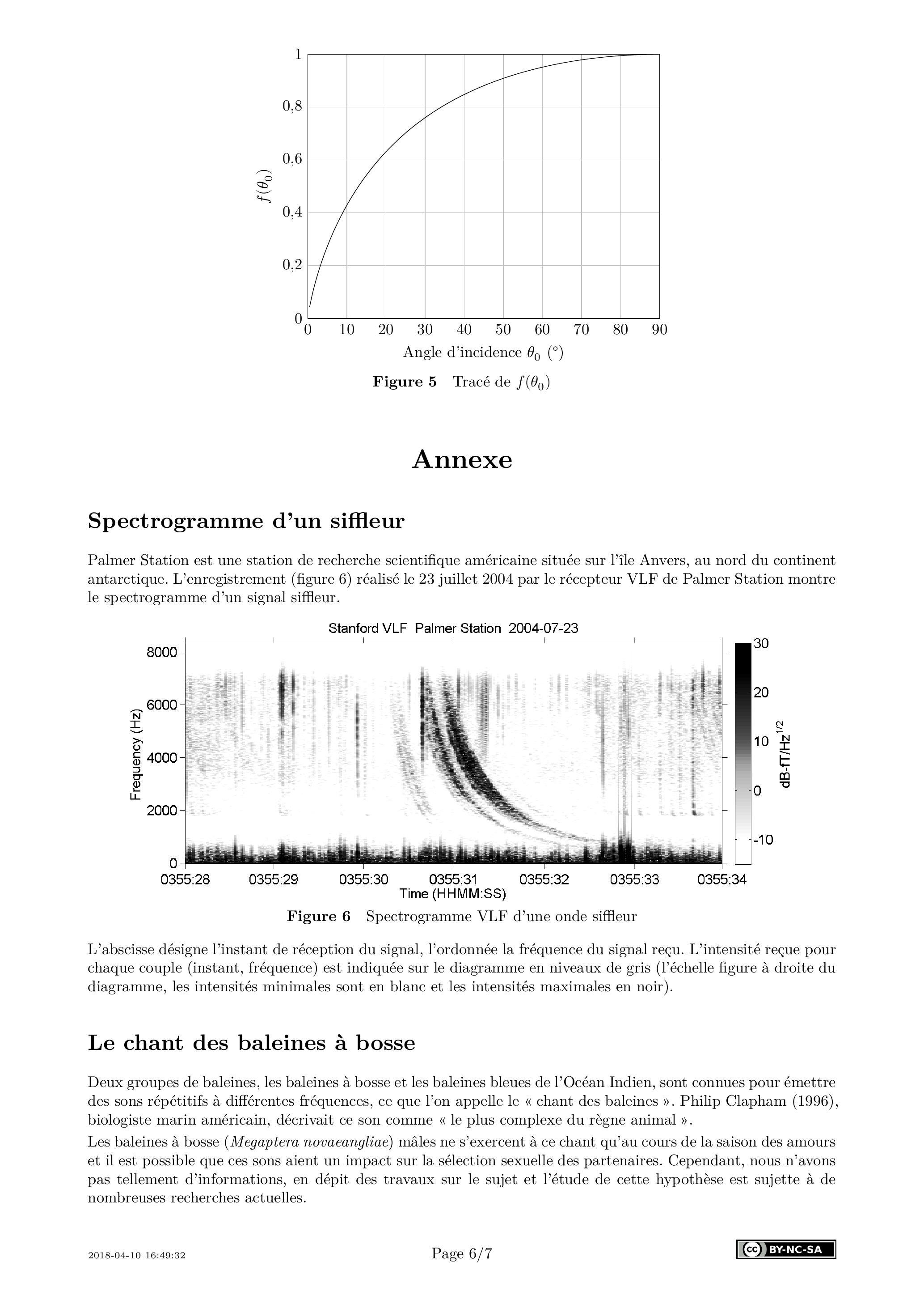 Q 33. Certaines baleines émettent un chant complexe qui peut être entendu à grande distance (voir annexe). En proposant un angle d'ouverture raisonnable pour l'émission du chant, proposer une estimation de la distance jusqu'à laquelle ce chant est distinctement audible pour une autre baleine de la même espèce, située à la même profondeur.