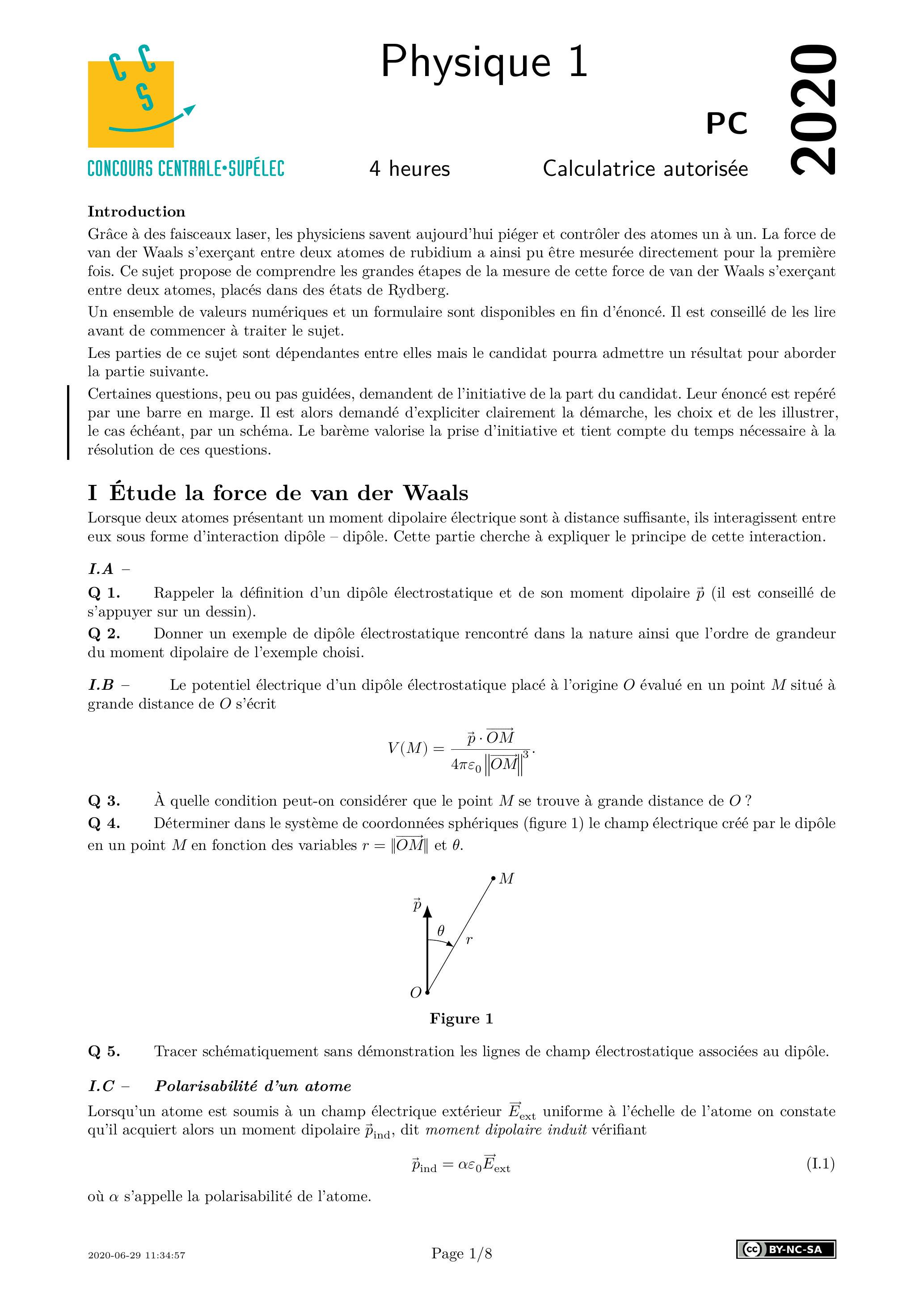 Centrale Physique 1 PC 2020 - Version Web LaTeX | WikiPrépa | WikiPrépa