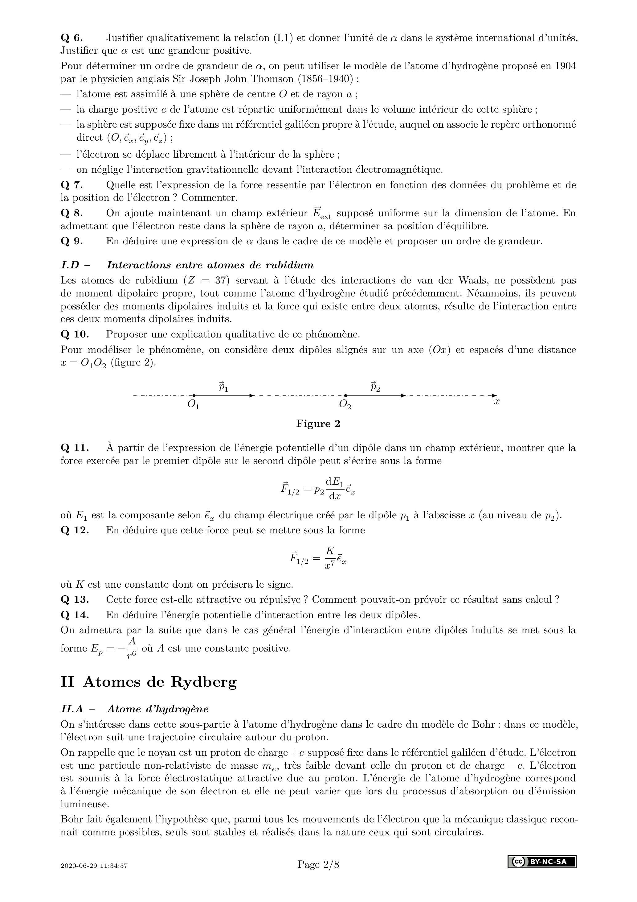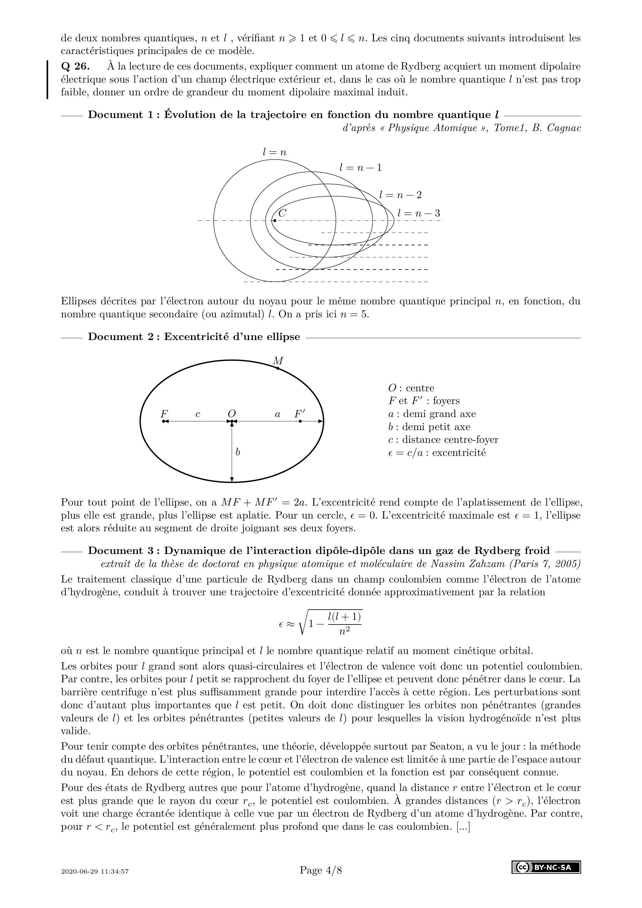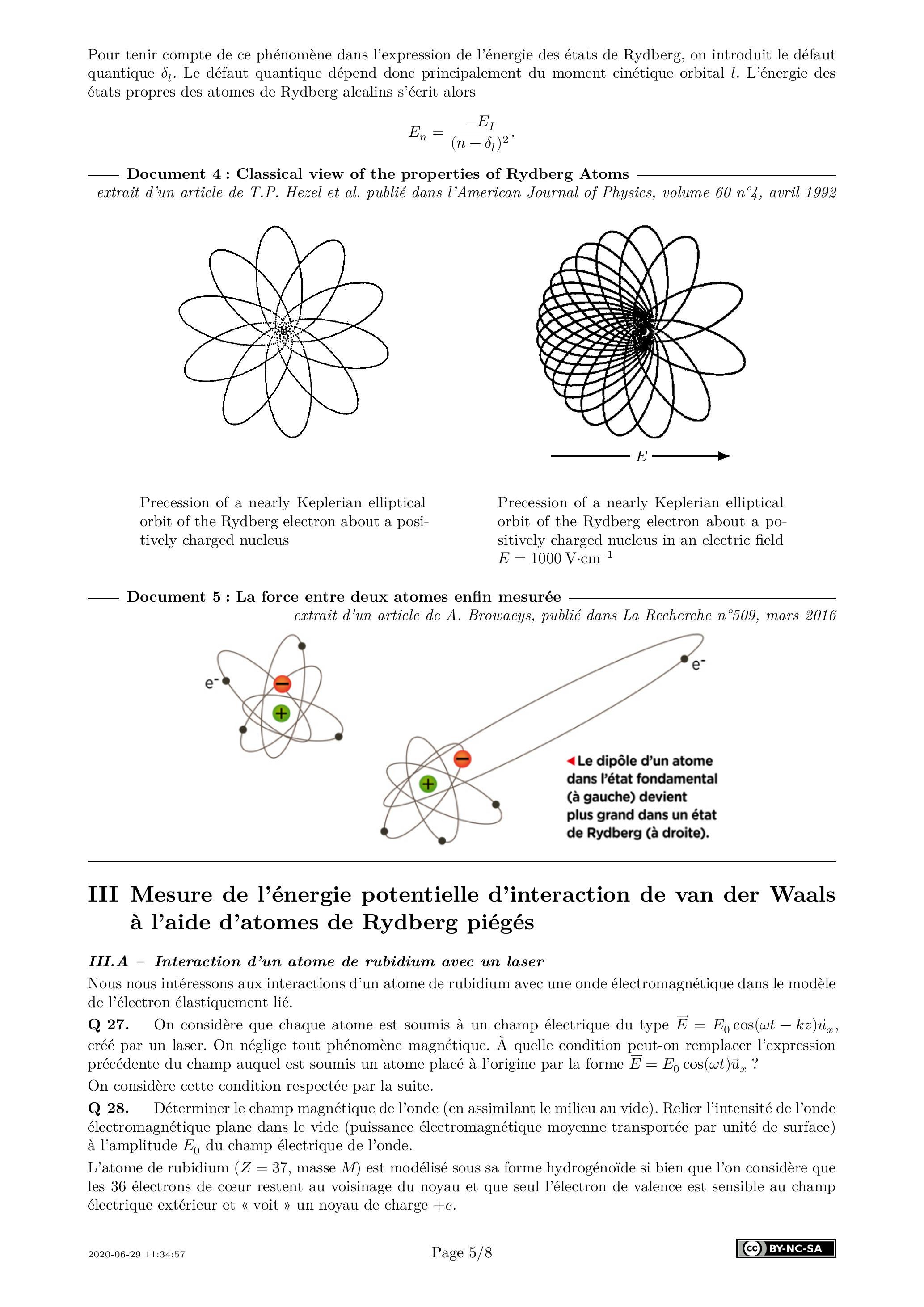 Q 26. À la lecture de ces documents, expliquer comment un atome de Rydberg acquiert un moment dipolaire électrique sous l'action d'un champ électrique extérieur et, dans le cas où le nombre quantique n'est pas trop faible, donner un ordre de grandeur du moment dipolaire maximal induit.