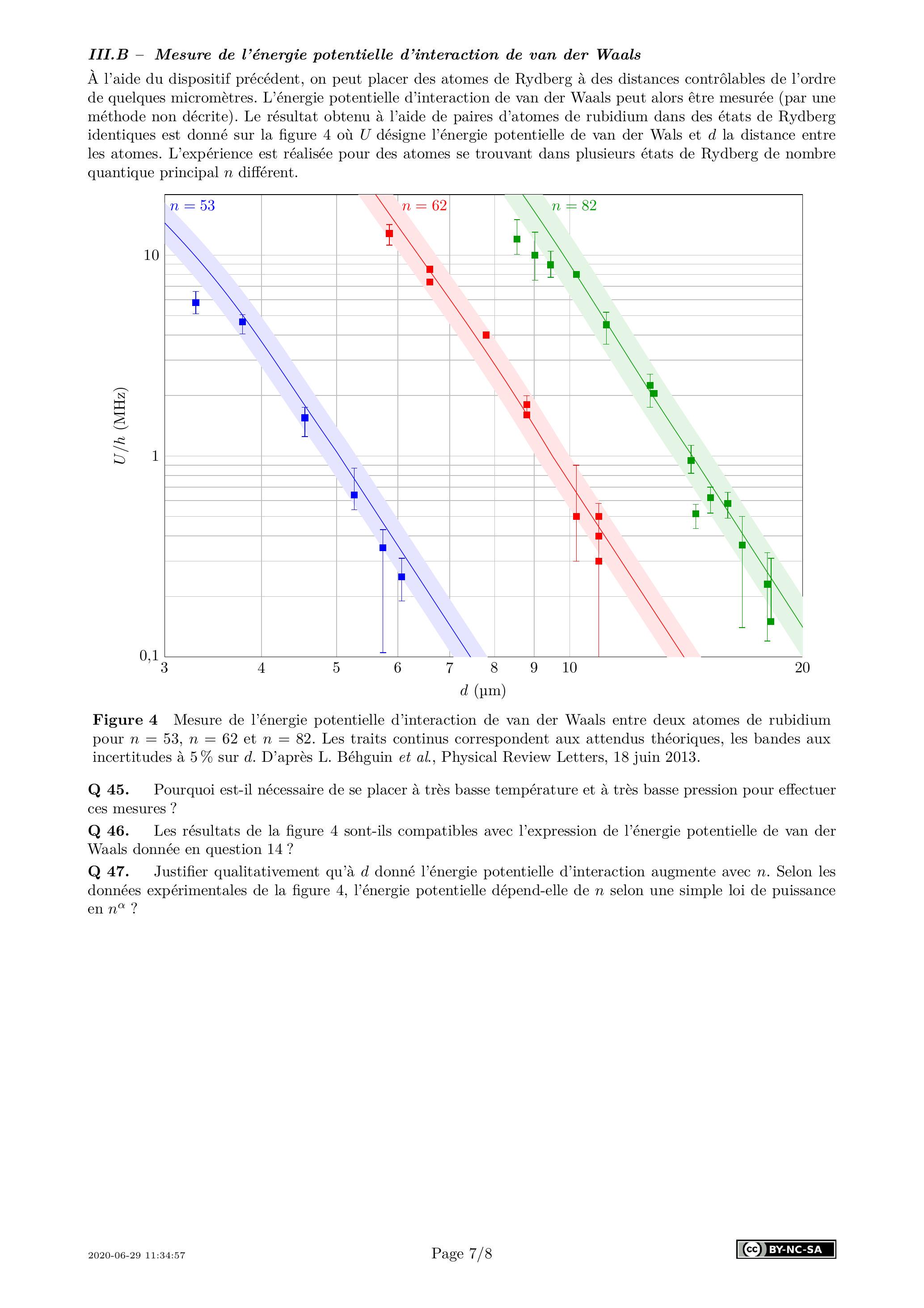 Q 47. Justifier qualitativement qu'à donné l'énergie potentielle d'interaction augmente avec . Selon les données expérimentales de la figure 4, l'énergie potentielle dépend-elle de selon une simple loi de puissance en ?