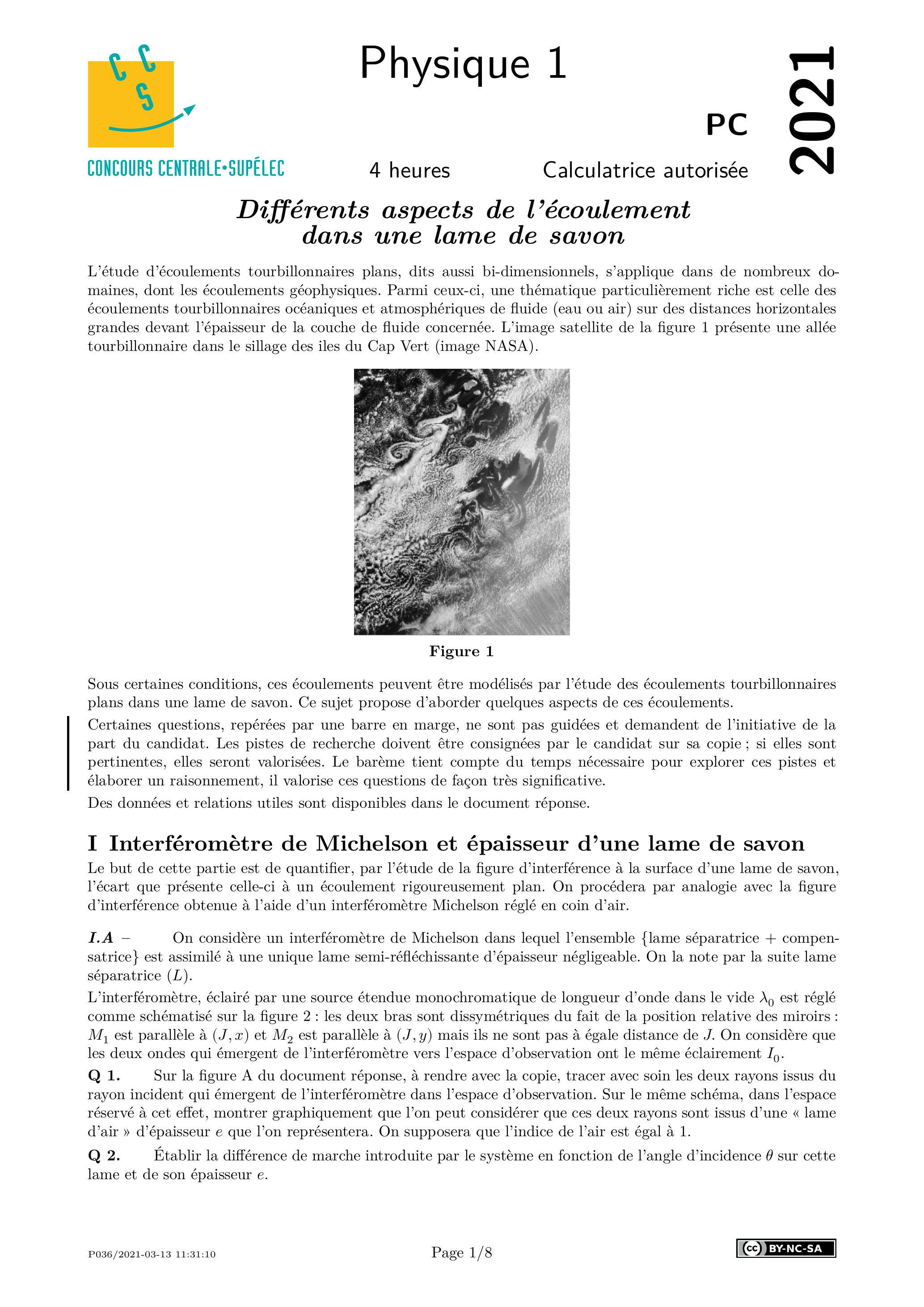 Centrale Physique 1 PC 2021 - Version Web LaTeX | WikiPrépa | WikiPrépa