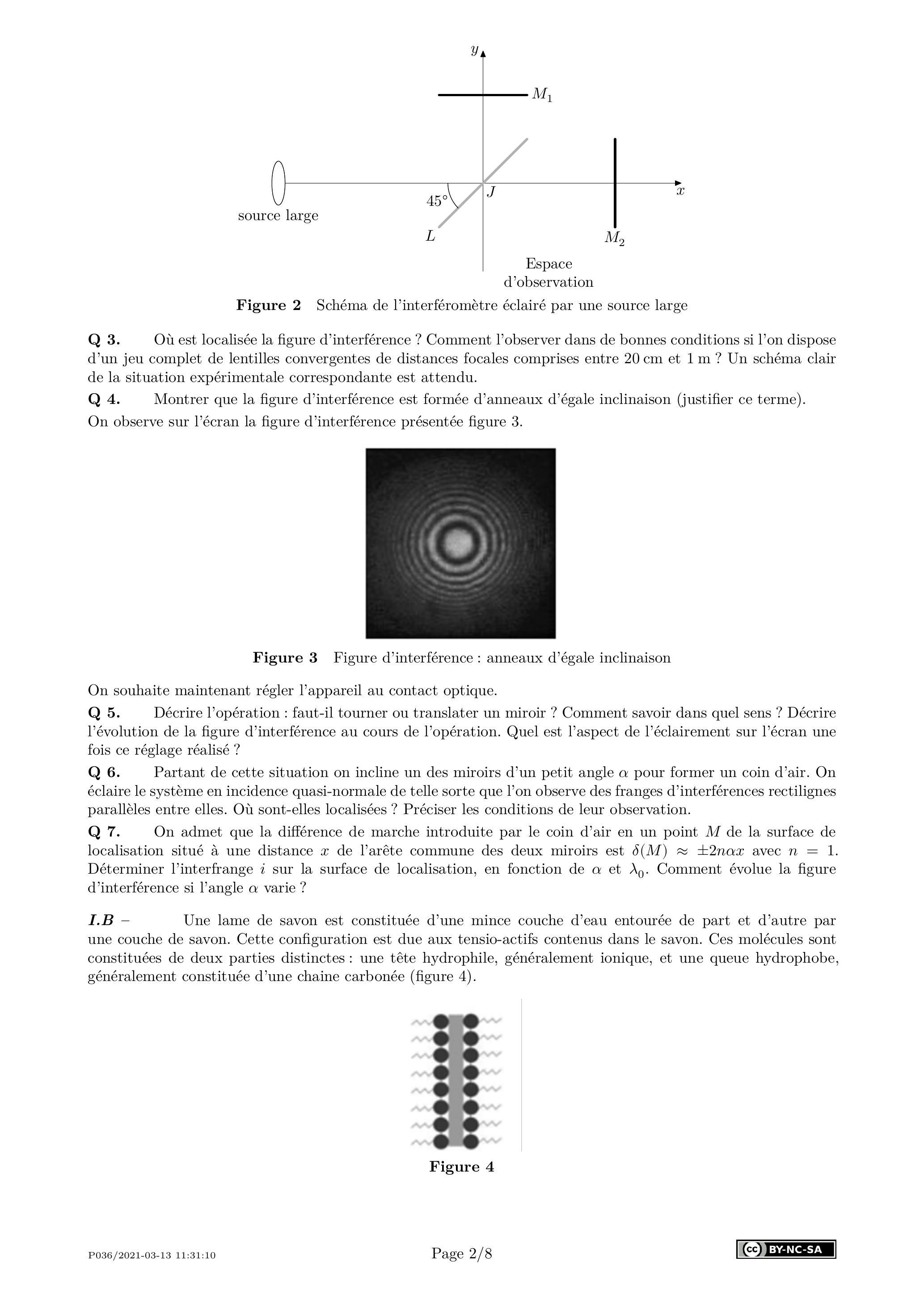 Q 8. Justifier qu'en incidence quasi-normale, le déphasage entre les deux ondes qui interfèrent peut s'écrire .