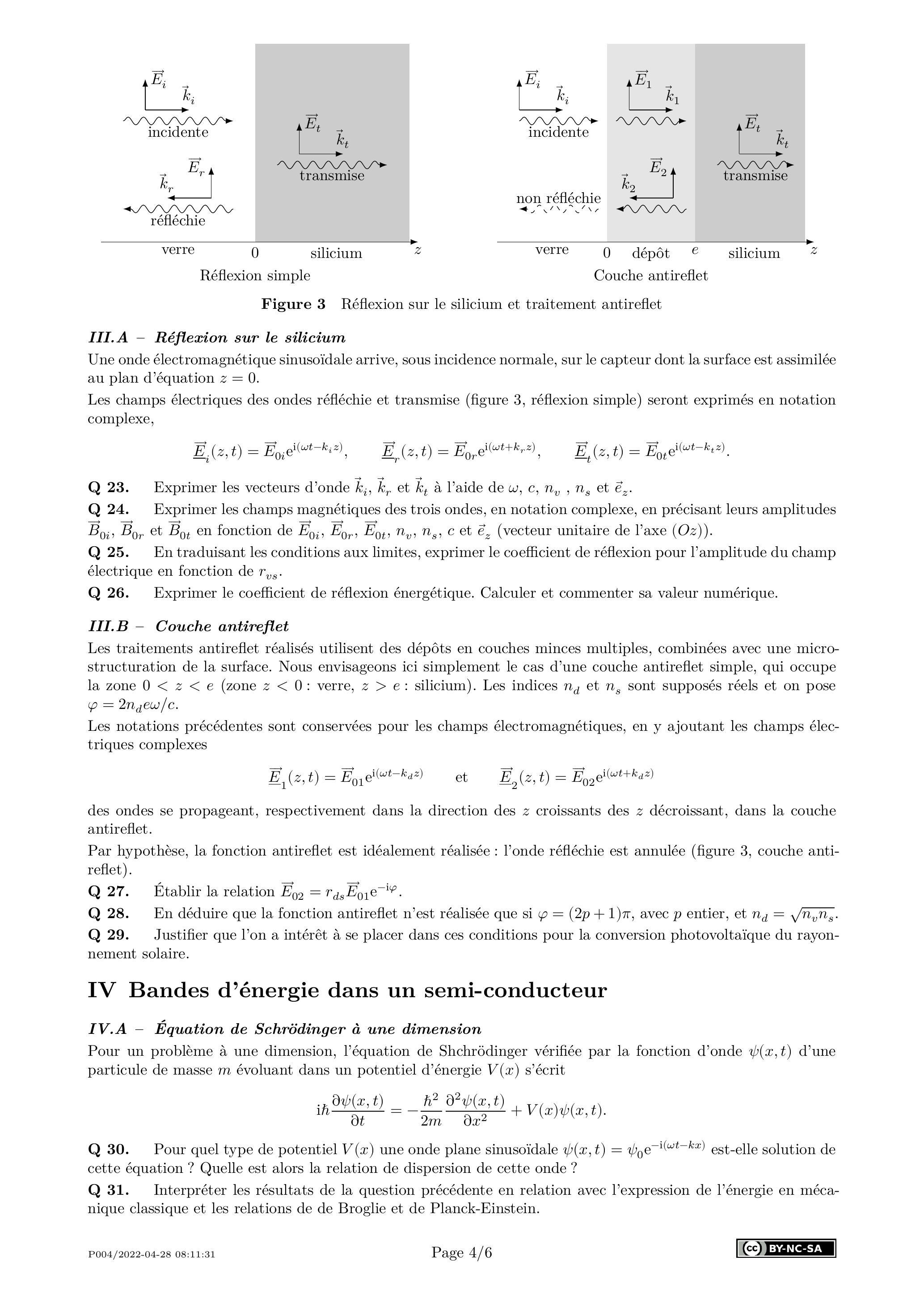 Les traitements antireflet réalisés utilisent des dépôts en couches minces multiples, combinées avec une microstructuration de la surface. Nous envisageons ici simplement le cas d'une couche antireflet simple, qui occupe la zone (zone : verre, : silicium). Les indices et sont supposés réels et on pose .