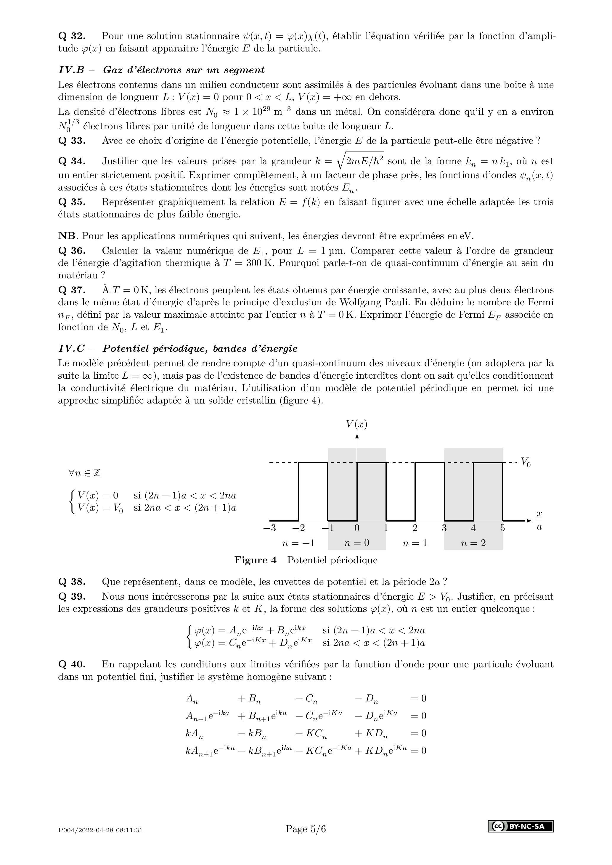 Q 38. Que représentent, dans ce modèle, les cuvettes de potentiel et la période ?