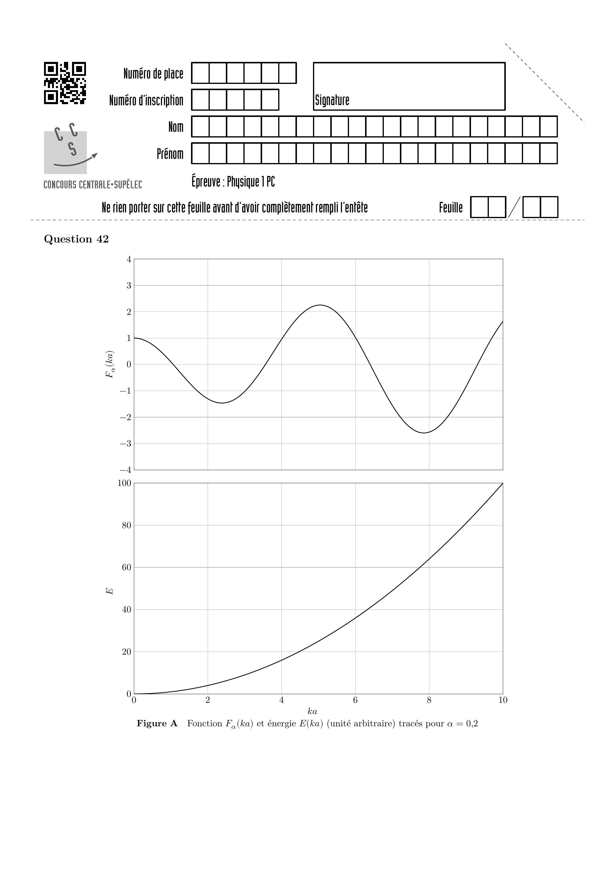 Q 39. Nous nous intéresserons par la suite aux états stationnaires d'énergie . Justifier, en précisant les expressions des grandeurs positives et , la forme des solutions , où est un entier quelconque :