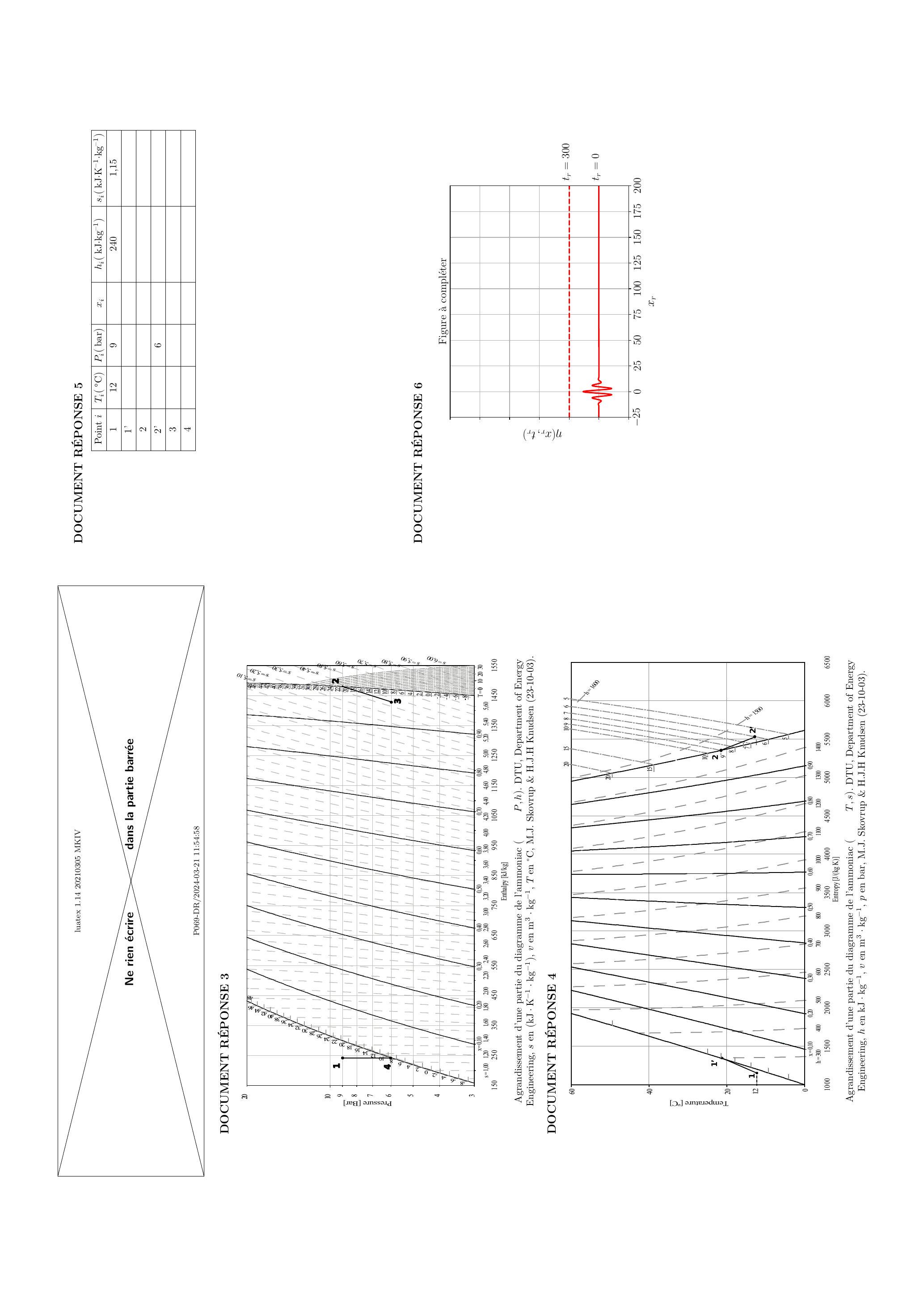 le document réponse 4 contient le diagramme ( ) sur lequel figurent en en tirets et points alternés les isobares graduées en bars et en tirets les isenthalpes graduées en .