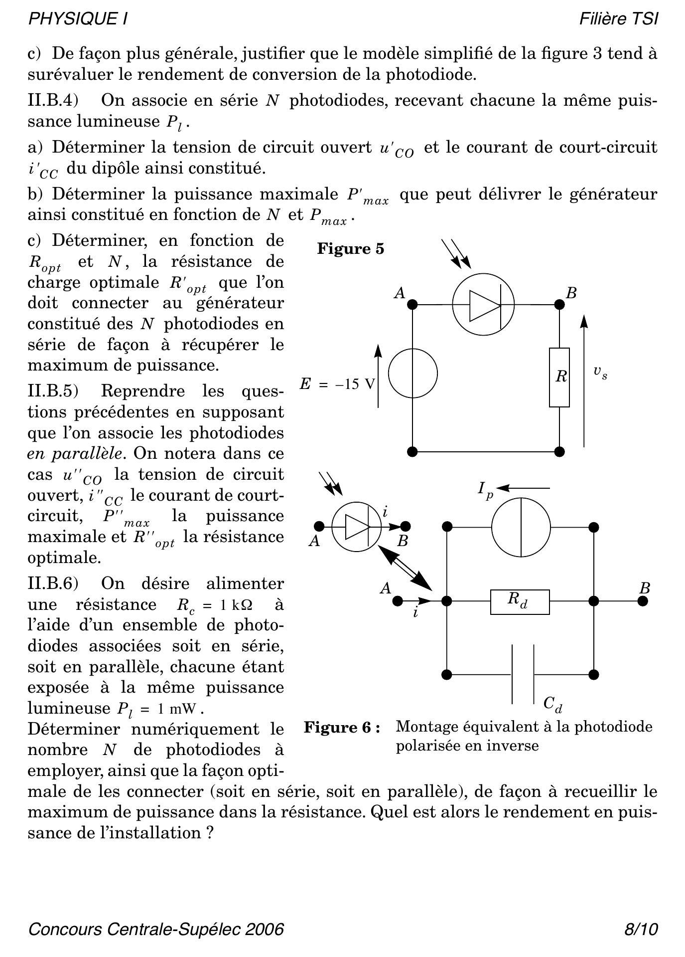 II.B.6) On désire alimenter une résistance à l'aide d'un ensemble de photodiodes associées soit en série, soit en parallèle, chacune étant exposée à la même puissance lumineuse .