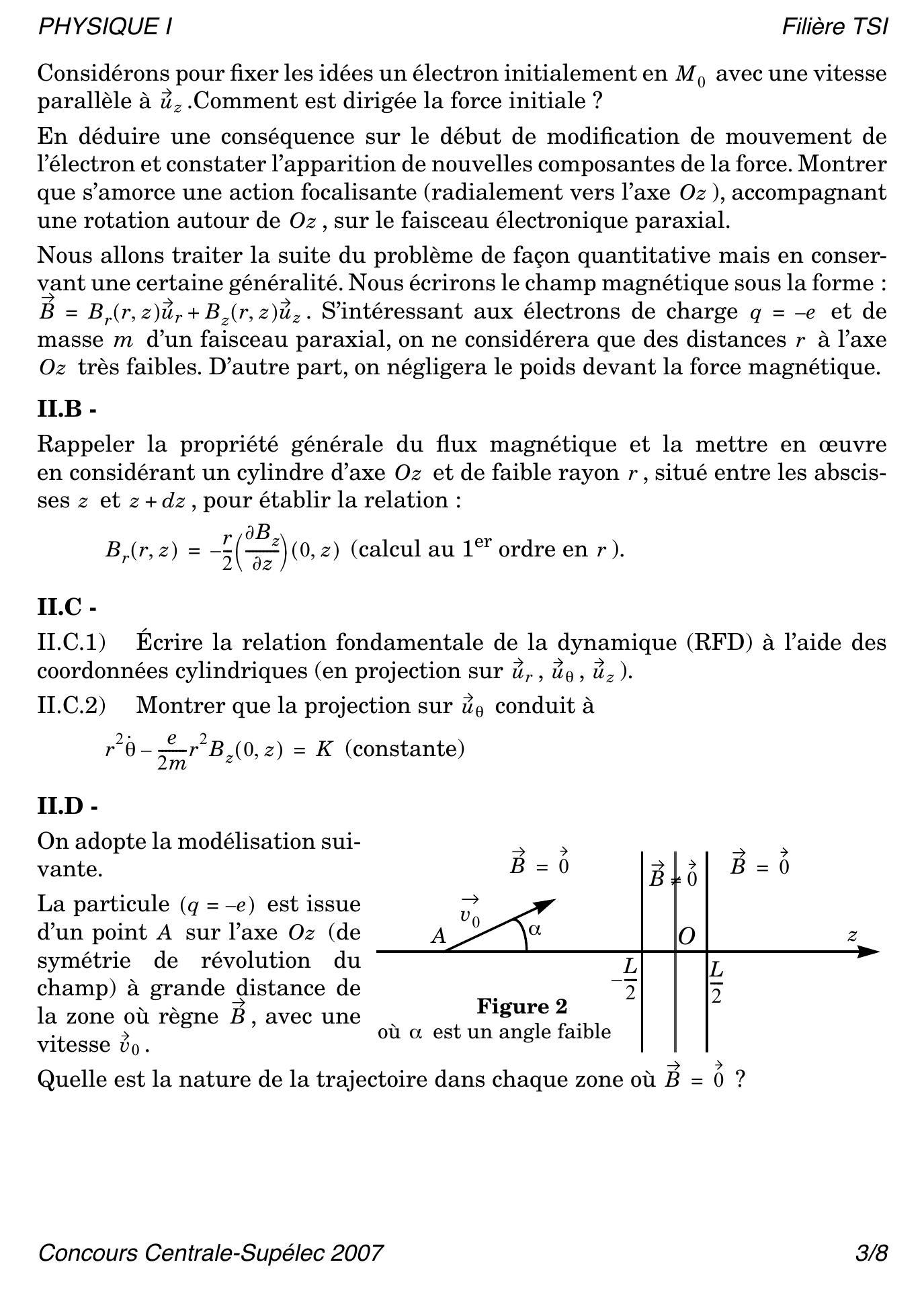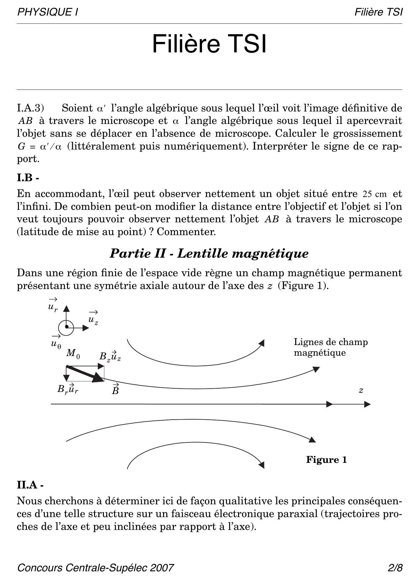 Une deuxième partie, de nature optoélectronique, propose l'étude d'une lentille magnétique. Elle met en œuvre des notions de magnétostatique et de mécanique du point. Elle débouche sur une analogie avec l'optique géométrique.