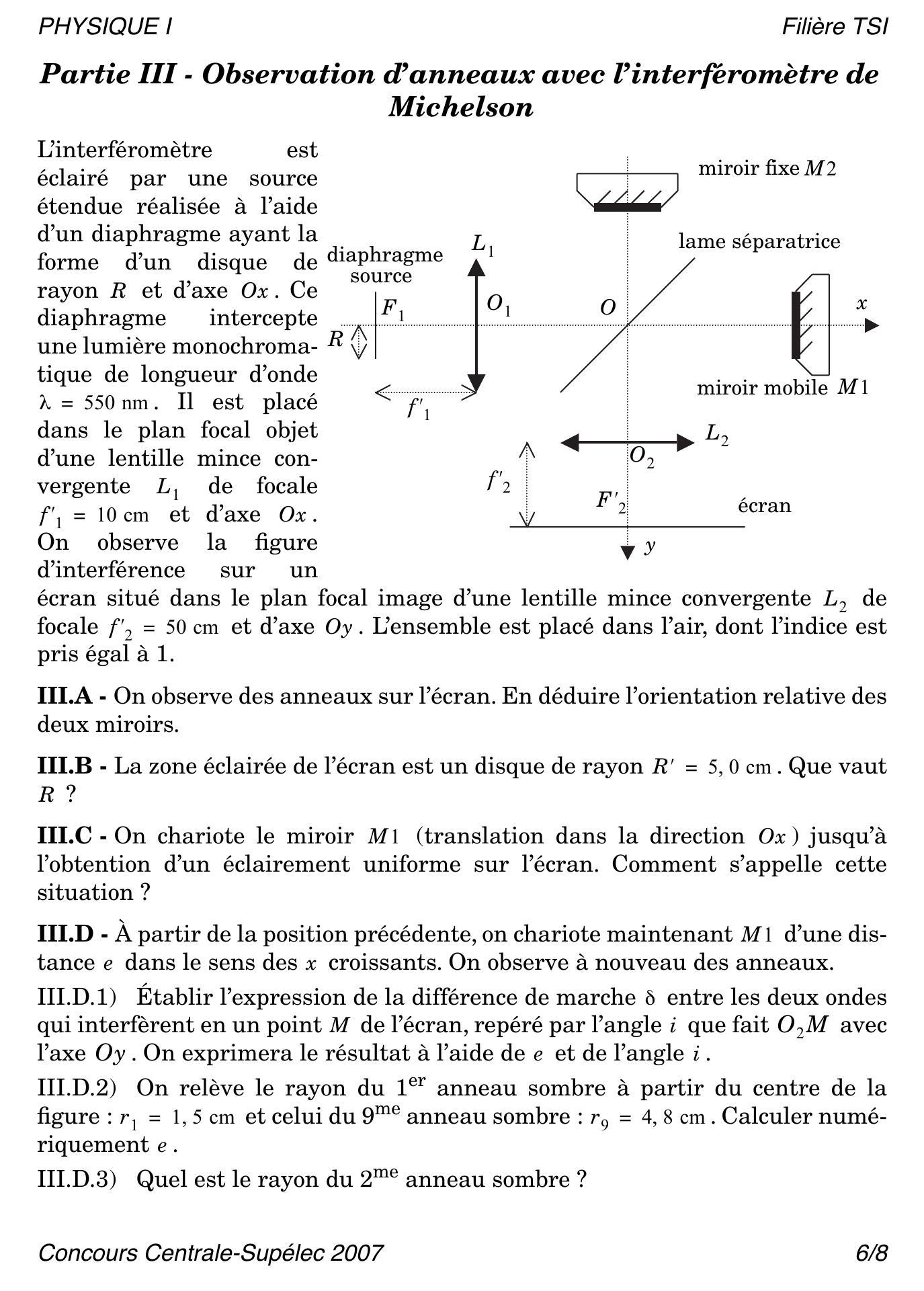 Une troisième partie, tournée vers l'optique physique, met en œuvre une utilisation de l'interféromètre de Michelson.