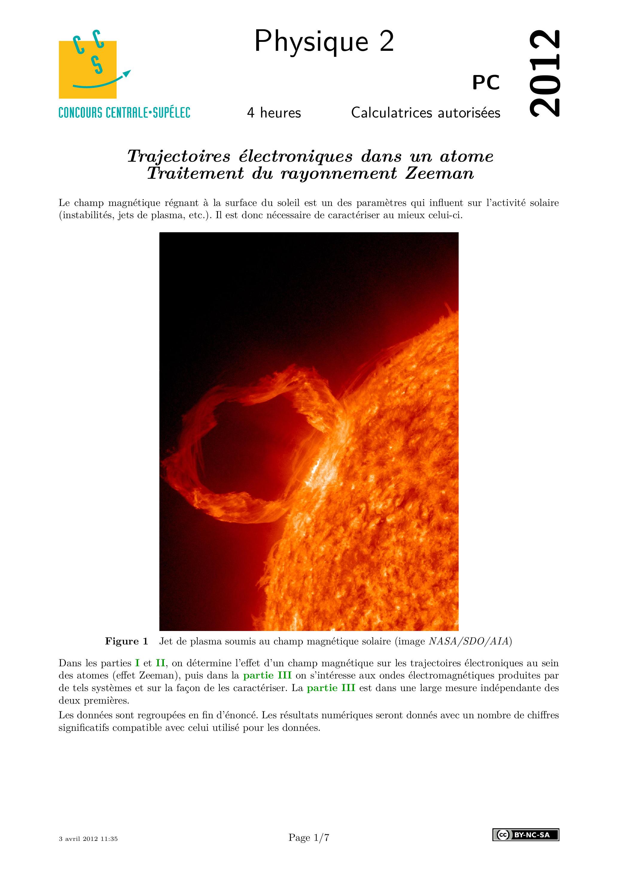 Centrale Physique 2 PC 2012 - Version Web LaTeX | WikiPrépa | WikiPrépa