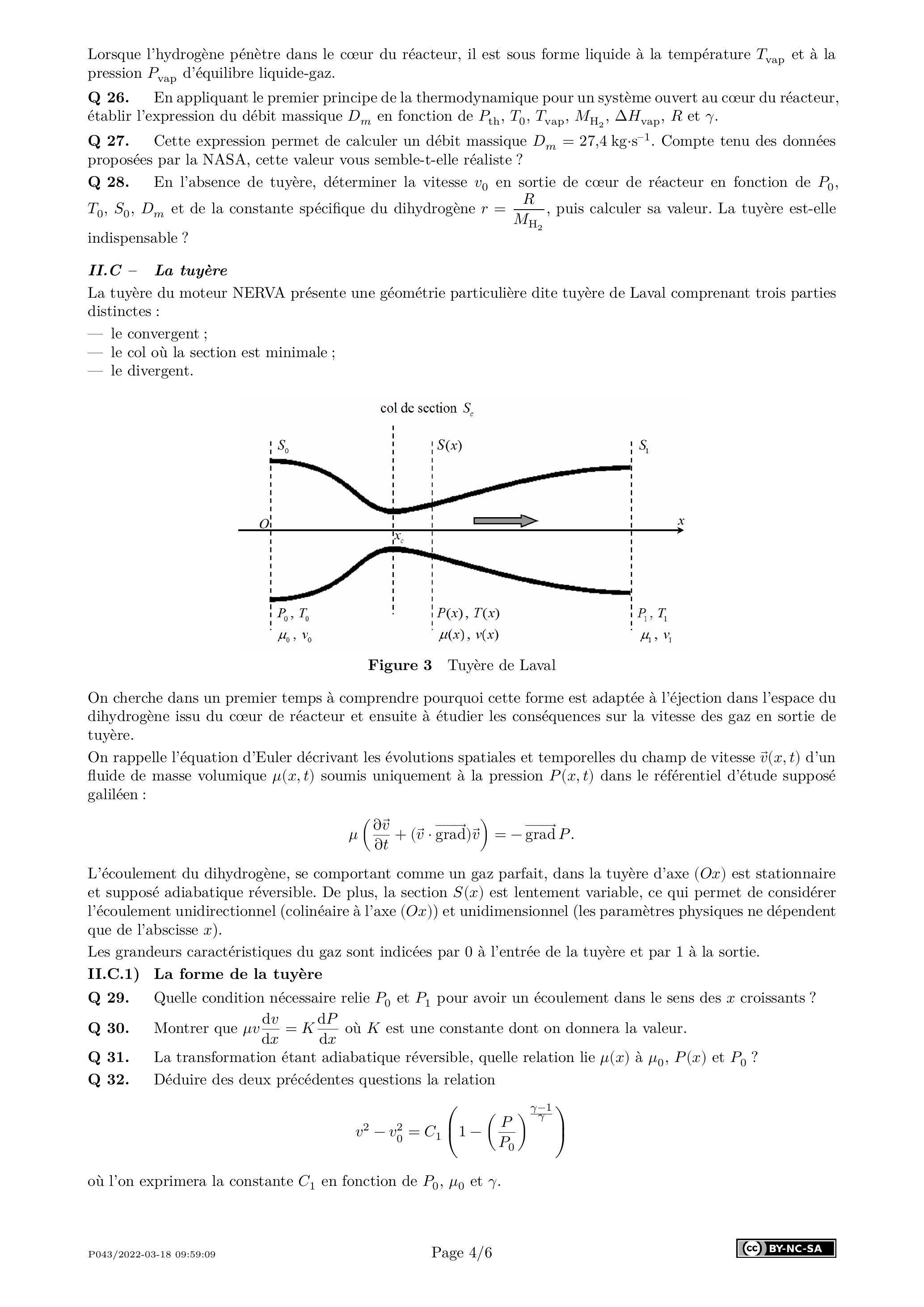 Q 36. Afin d'éviter une trop forte détente des gaz après la sortie de la tuyère (ce qui peut conduire à la génération d'une onde de choc), on cherche à avoir une pression proche de la pression extérieure. Le choix d'une tuyère de Laval pour le moteur NERVA est-il le plus judicieux ?