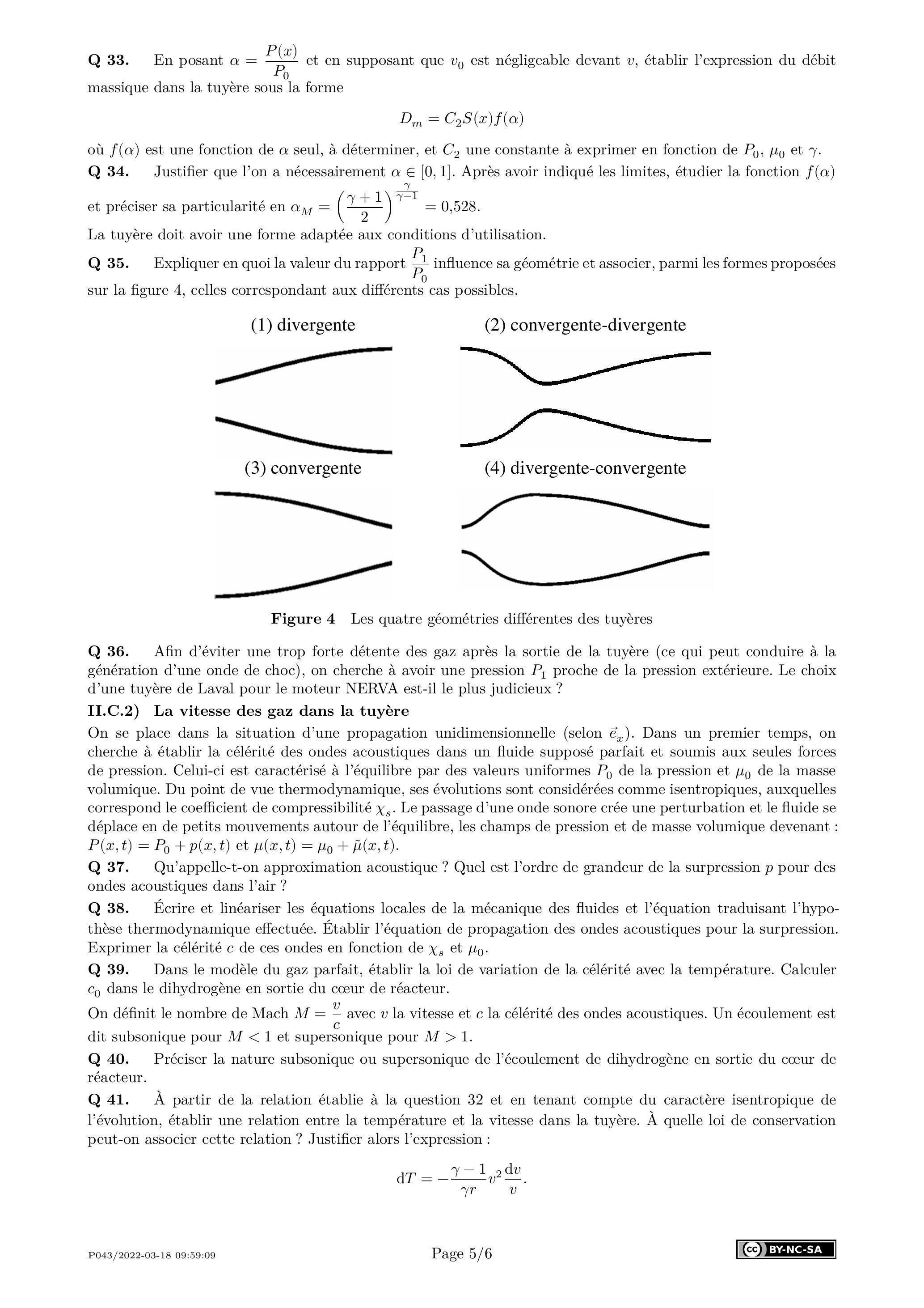 Q 40. Préciser la nature subsonique ou supersonique de l'écoulement de dihydrogène en sortie du cœur de réacteur.