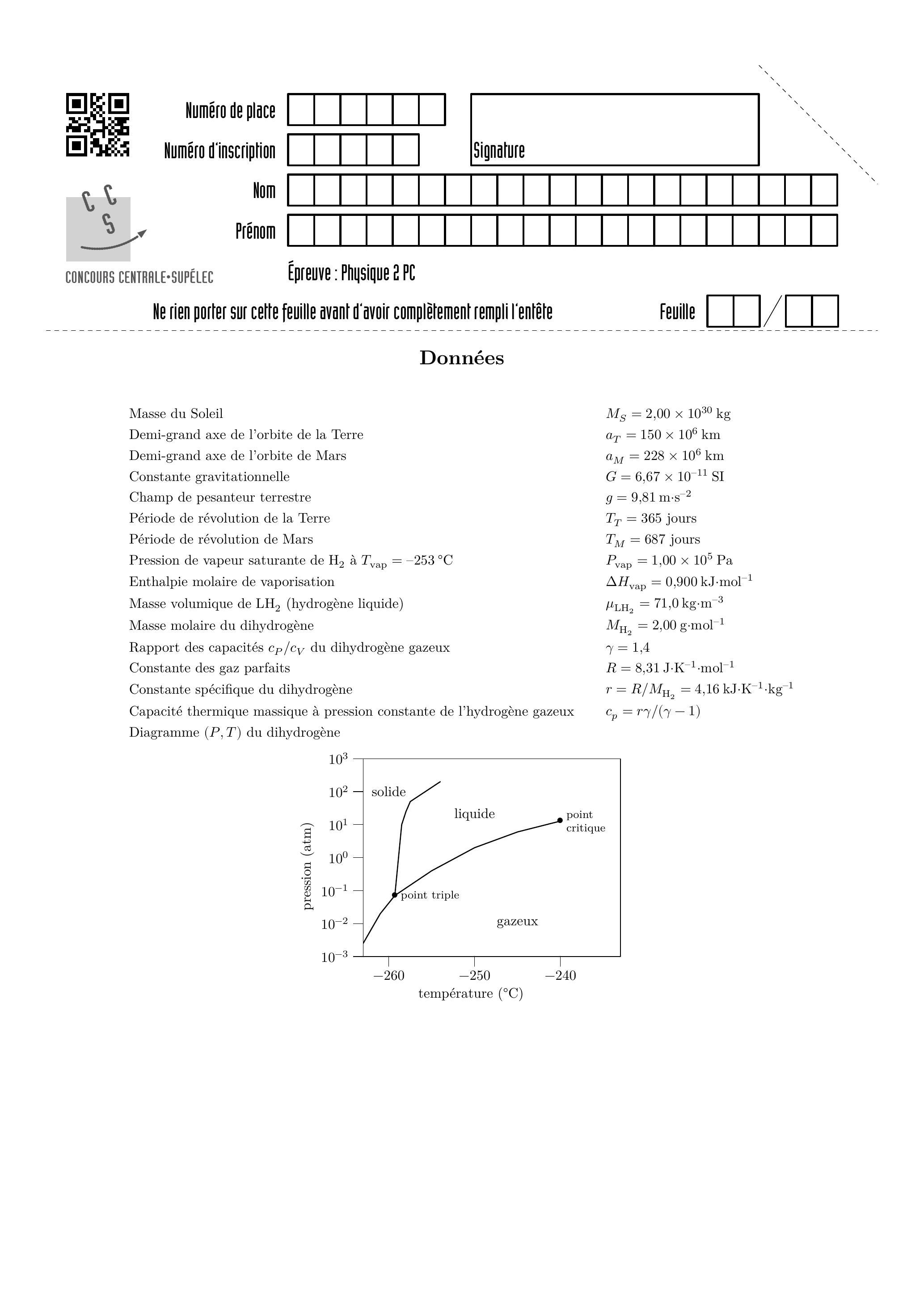 Ce sujet est accompagné d'un document réponse à rendre avec la copie (même s'il n'a pas été utilisé). Les principales données numériques sont regroupées dans le document réponse.