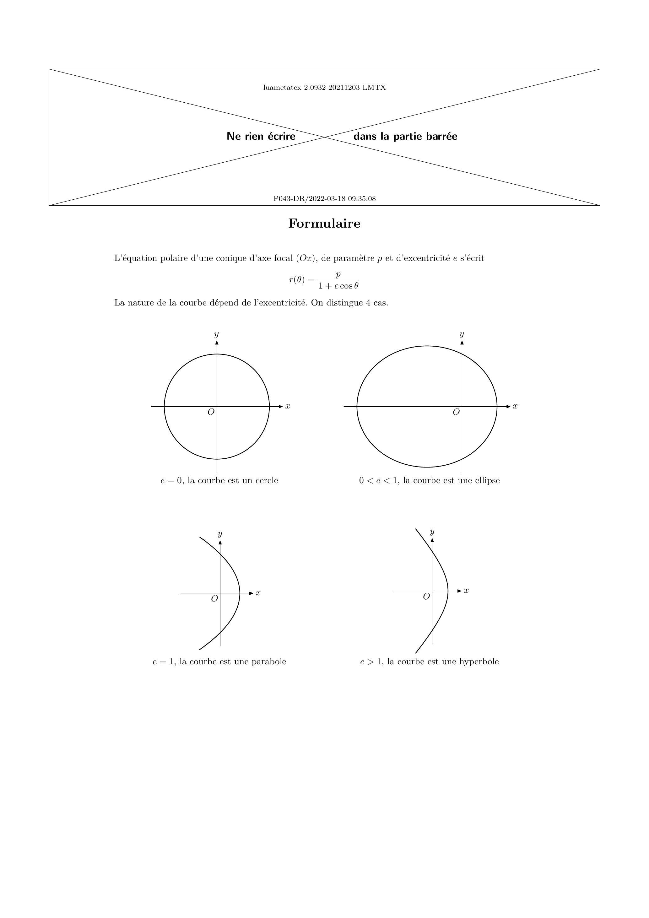 L'équation polaire d'une conique d'axe focal ( ), de paramètre et d'excentricité s'écrit