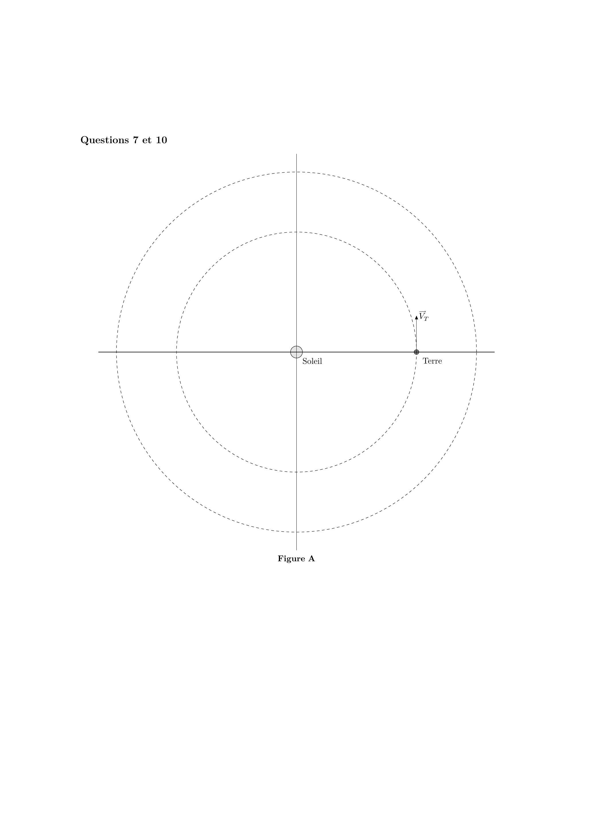Q 7. Représenter, sur la figure A du document réponse, montrant les orbites de la Terre et de Mars, l'allure de l'orbite de transfert (trajectoire de Hohmann).