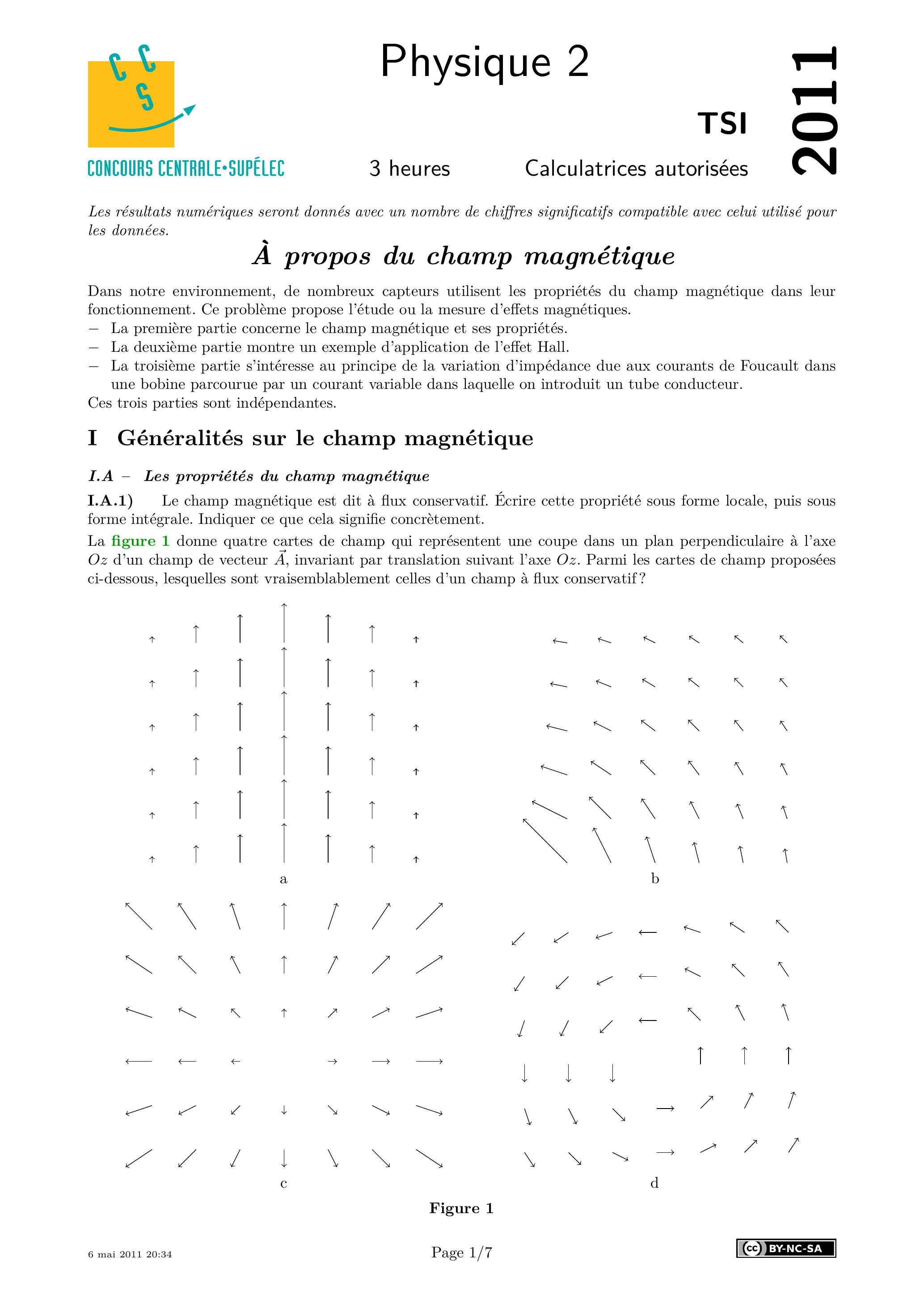 Centrale Physique 2 TSI 2011 - Version Web LaTeX | WikiPrépa | WikiPrépa