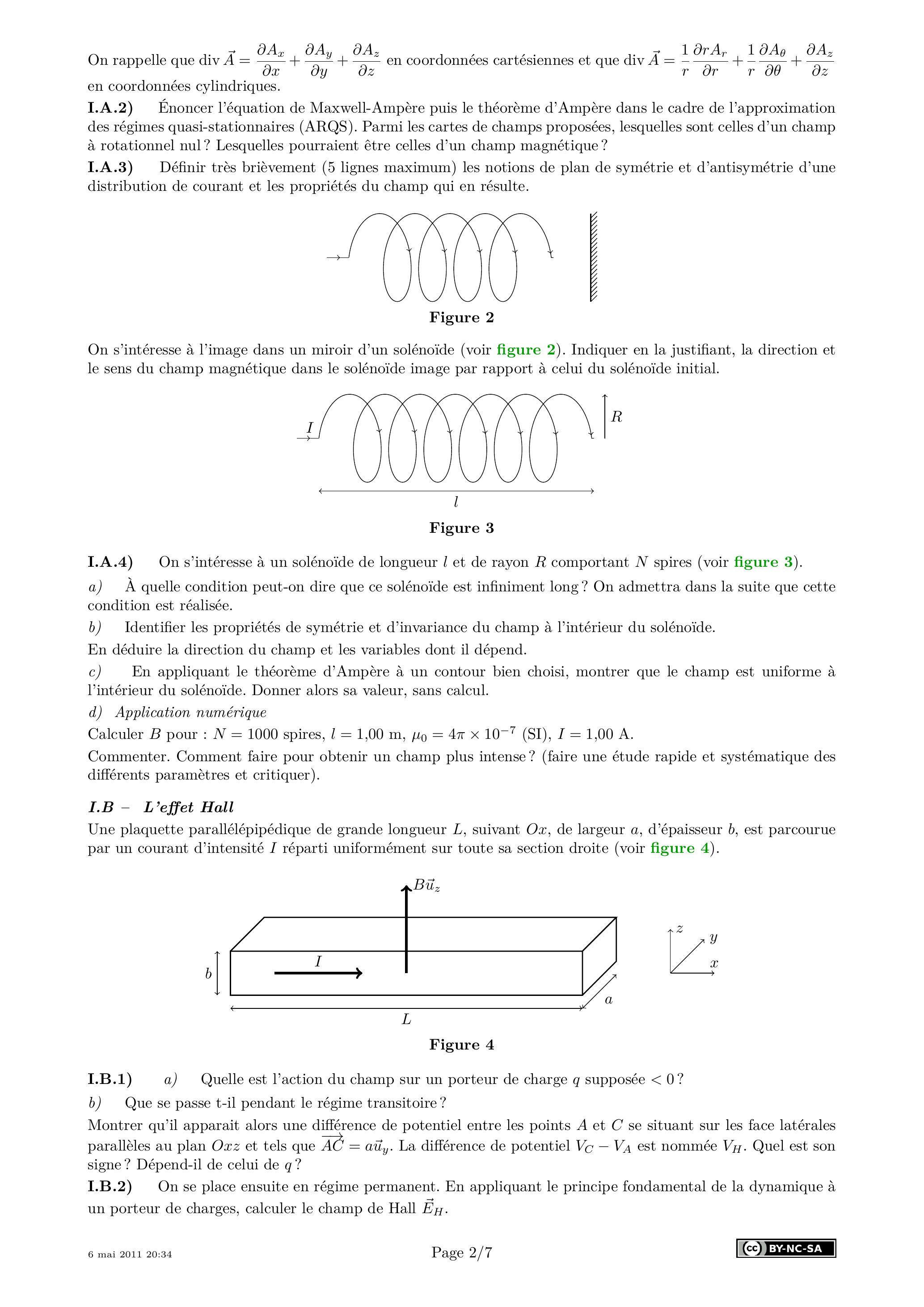 I.A.3) Définir très brièvement ( 5 lignes maximum) les notions de plan de symétrie et d'antisymétrie d'une distribution de courant et les propriétés du champ qui en résulte.