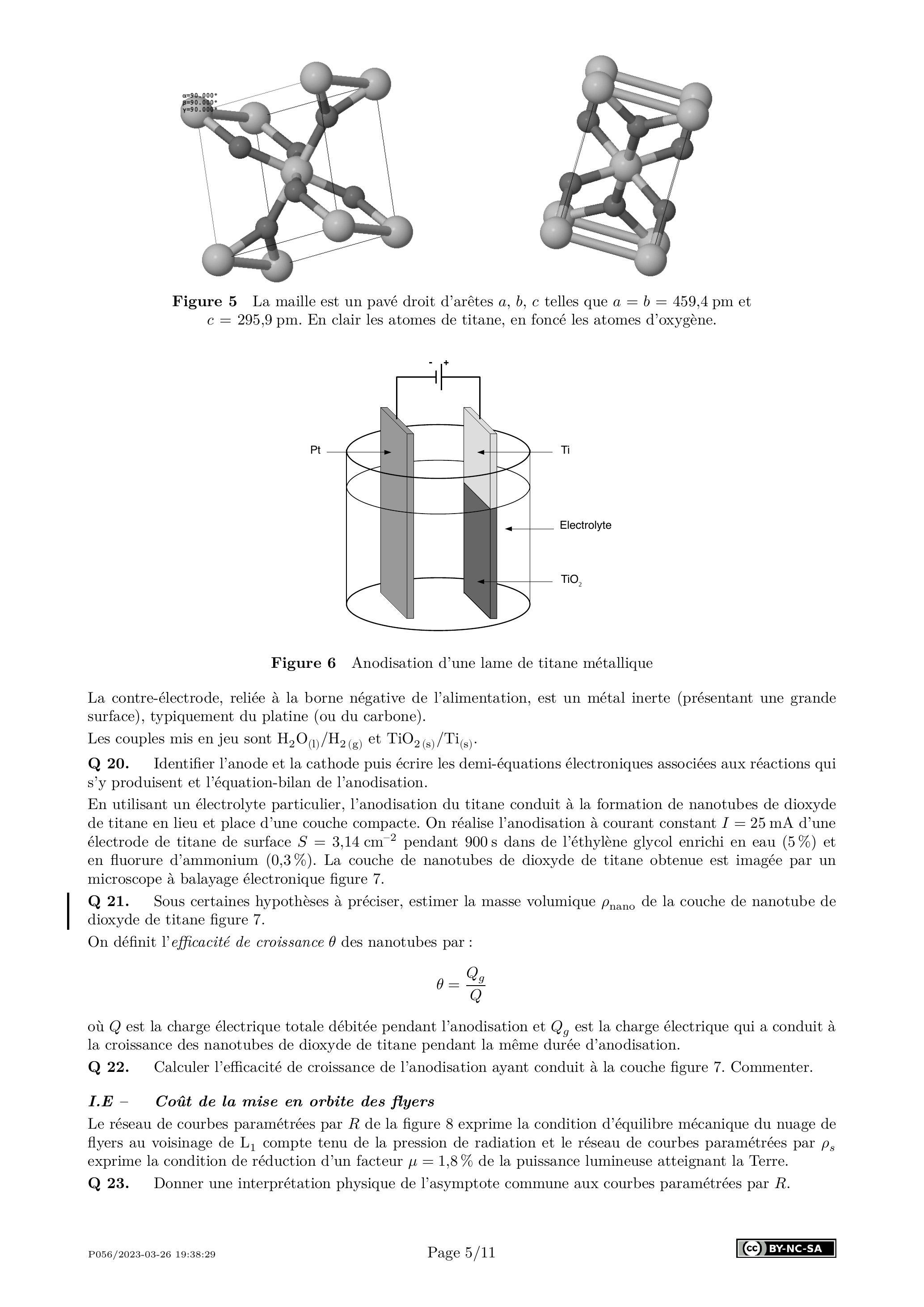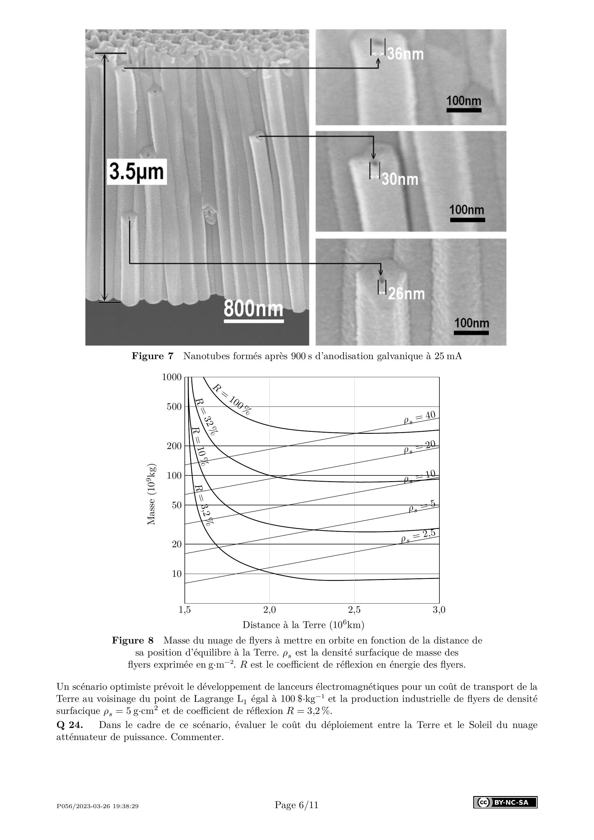 Q 21. Sous certaines hypothèses à préciser, estimer la masse volumique de la couche de nanotube de dioxyde de titane figure 7.