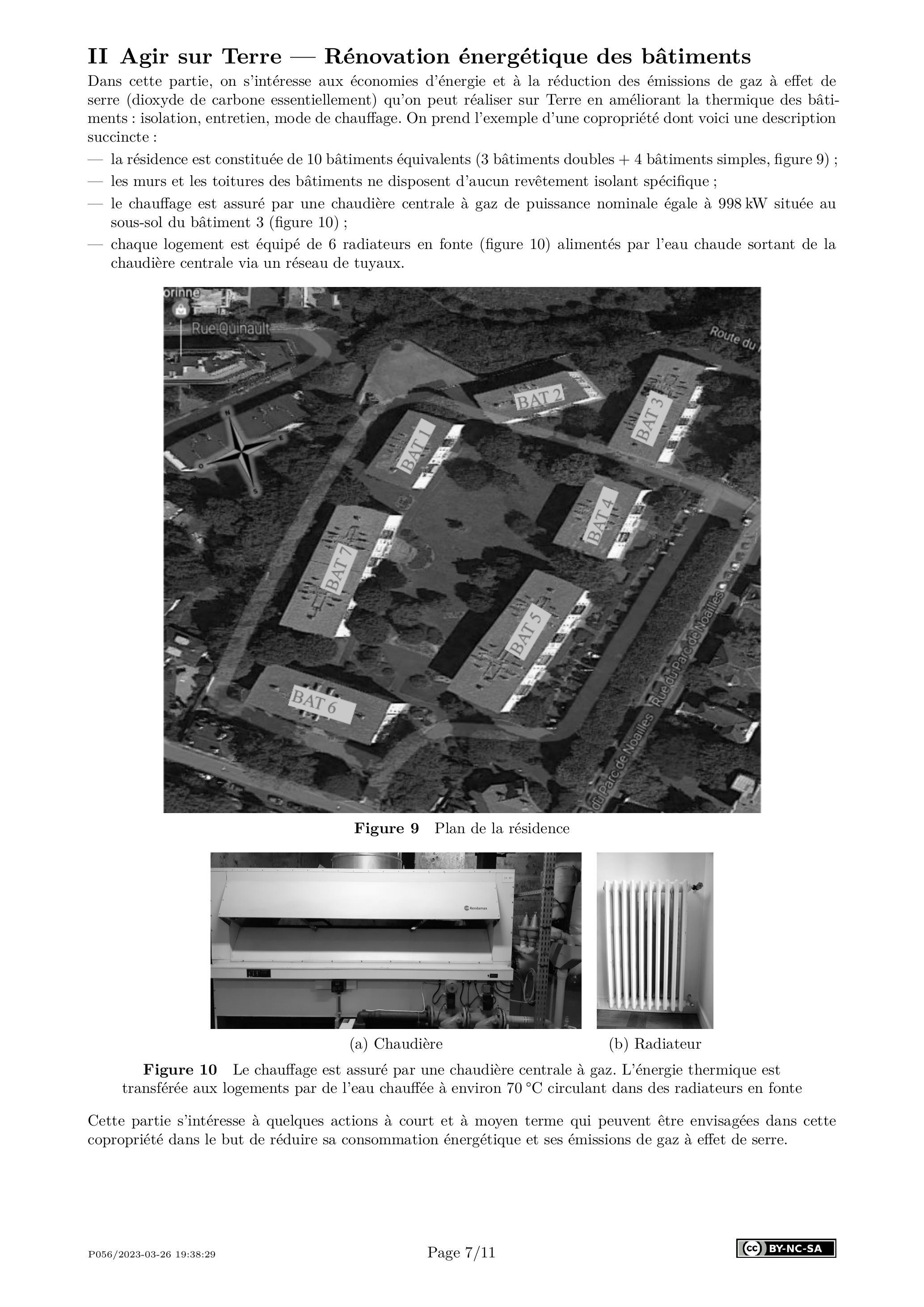 Dans cette partie, on s'intéresse aux économies d'énergie et à la réduction des émissions de gaz à effet de serre (dioxyde de carbone essentiellement) qu'on peut réaliser sur Terre en améliorant la thermique des bâtiments : isolation, entretien, mode de chauffage. On prend l'exemple d'une copropriété dont voici une description succincte: