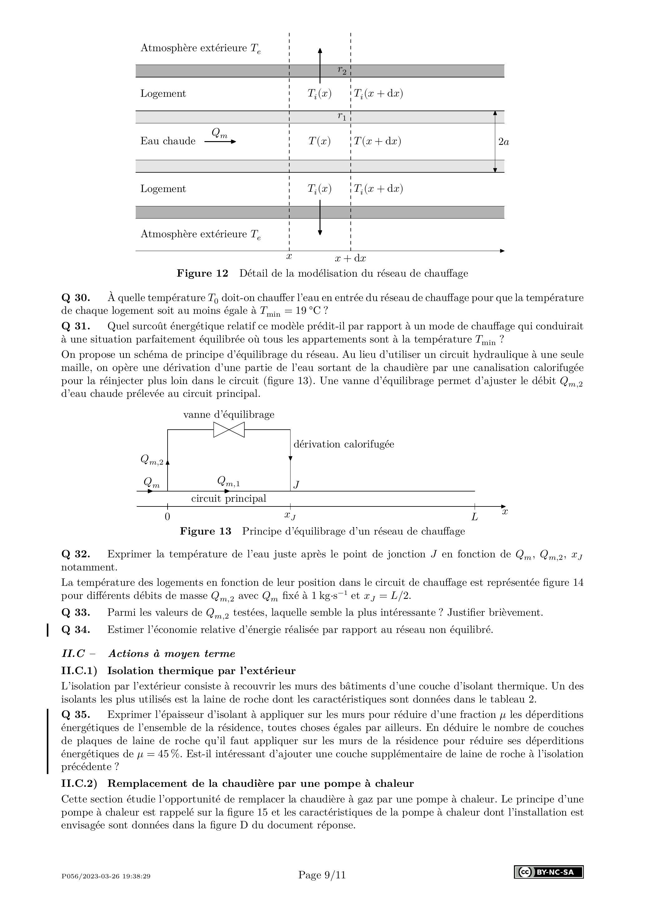 Q 41. L'utilisation de radiateurs en fonte nécessite une injection d'eau à environ . Est-il intéressant, du point de vue financier et du point de vue de l'émission de gaz à effet de serre, de remplacer la chaudière de la copropriété par un ensemble de pompes à chaleur produisant de l'eau à cette température ? On prendra 200 €/MWh pour le coût de l'électricité et 90 €/MWh pour le coût du gaz. Discuter.