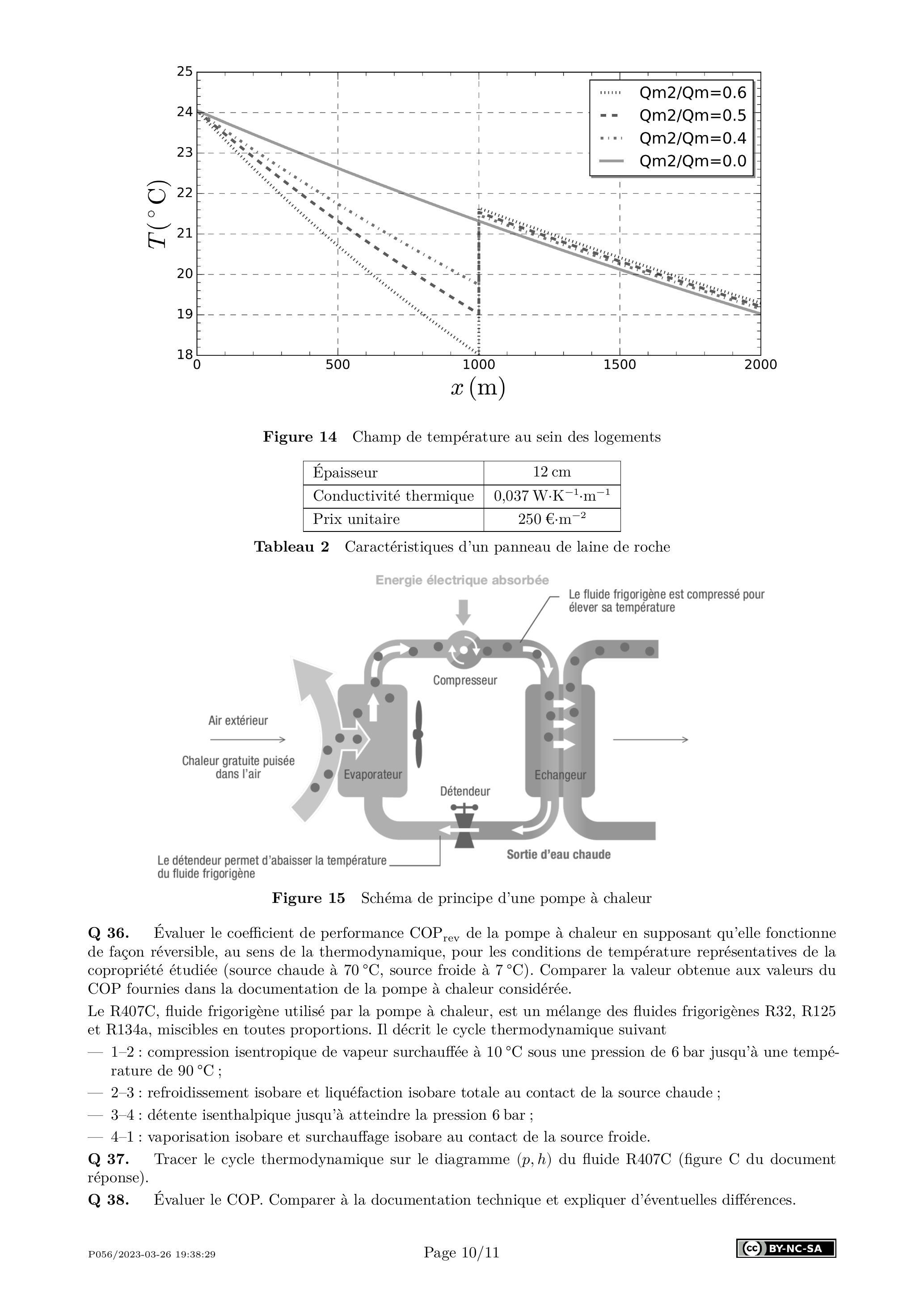 Q 39. Évaluer le débit de masse du fluide frigorigène lorsque la pompe à chaleur fonctionne en mode «priorité puissance». Commenter.