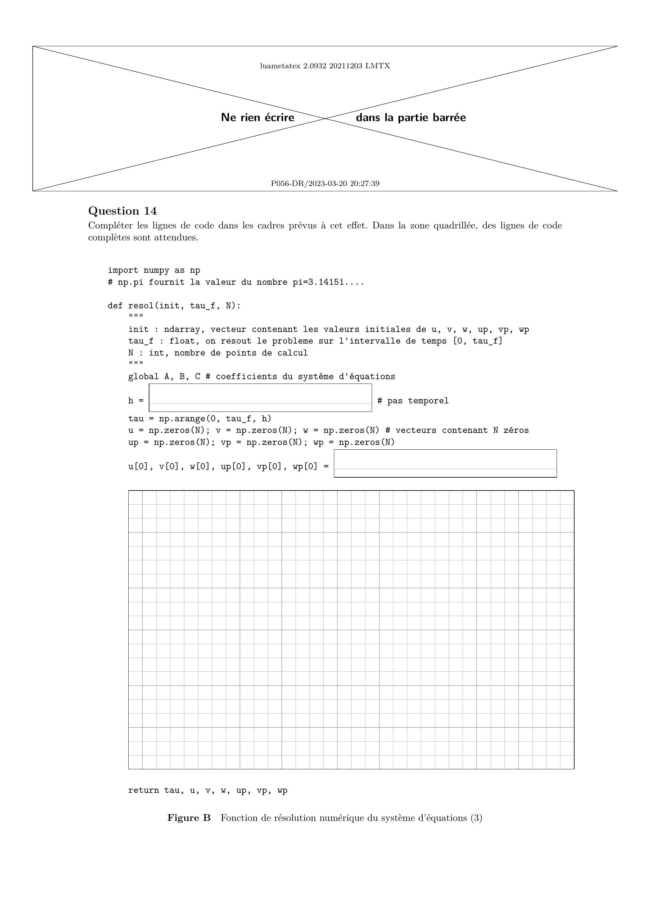 Q 14. Compléter la fonction Python ébauchée sur la figure B du document réponse.