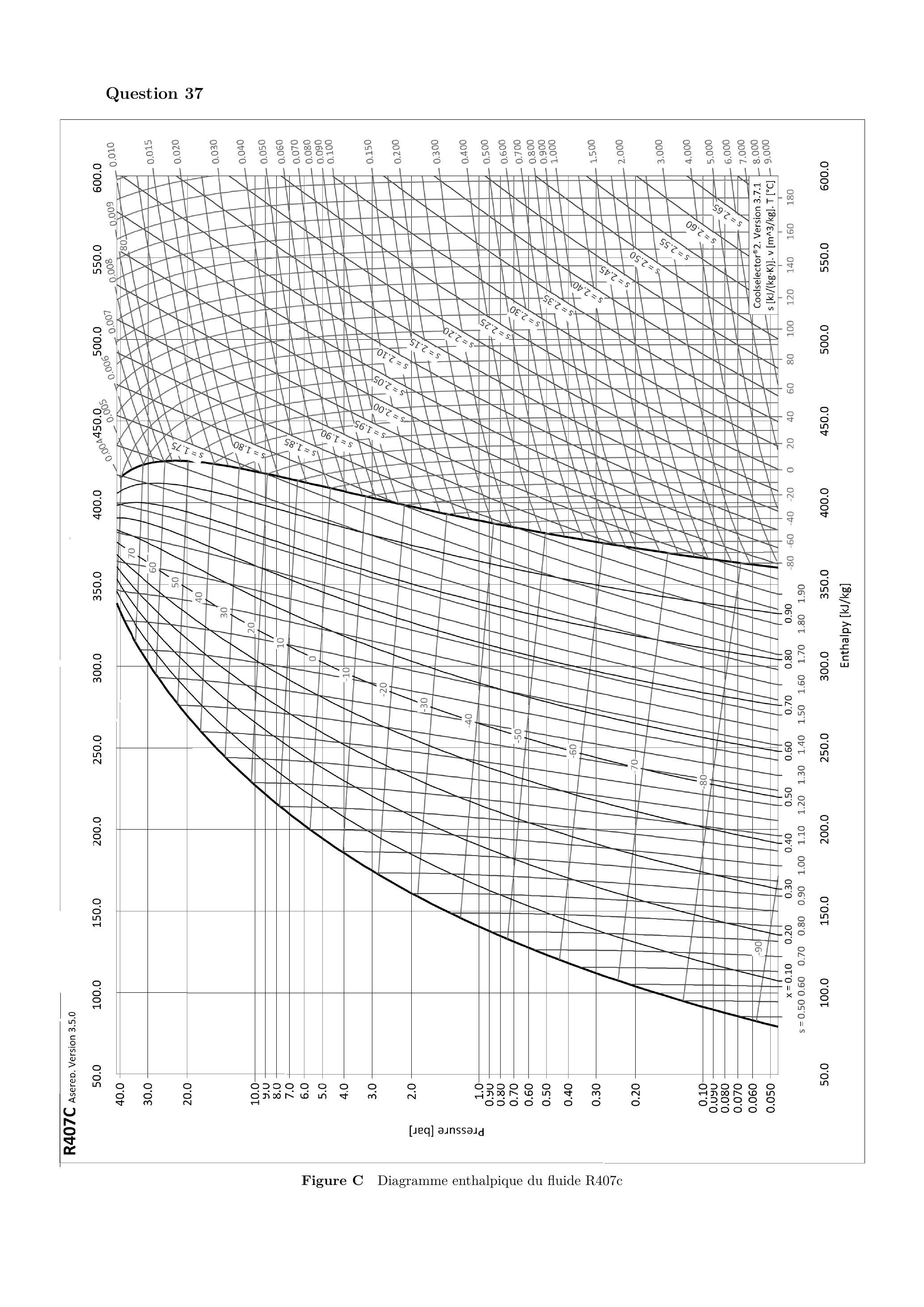 Q 37. Tracer le cycle thermodynamique sur le diagramme ( ) du fluide R407C (figure C du document réponse).