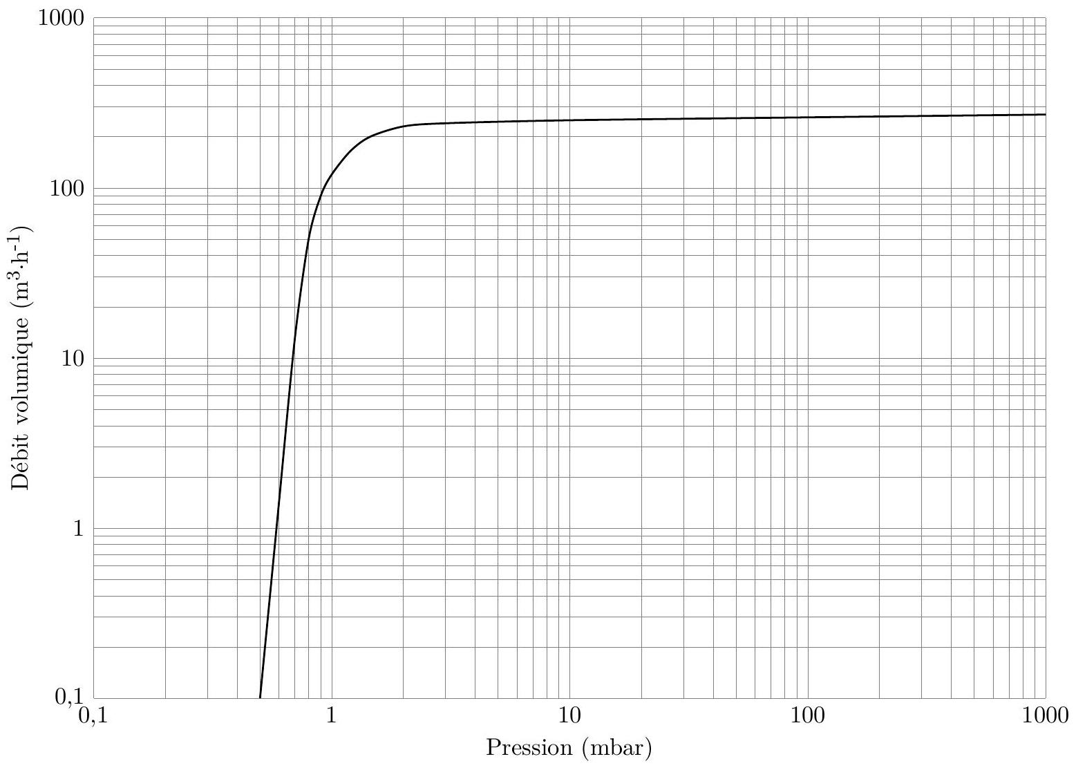 I.A.2) La figure 2 présente la caractéristique (c'est-à-dire le débit volumique en fonction de la pression