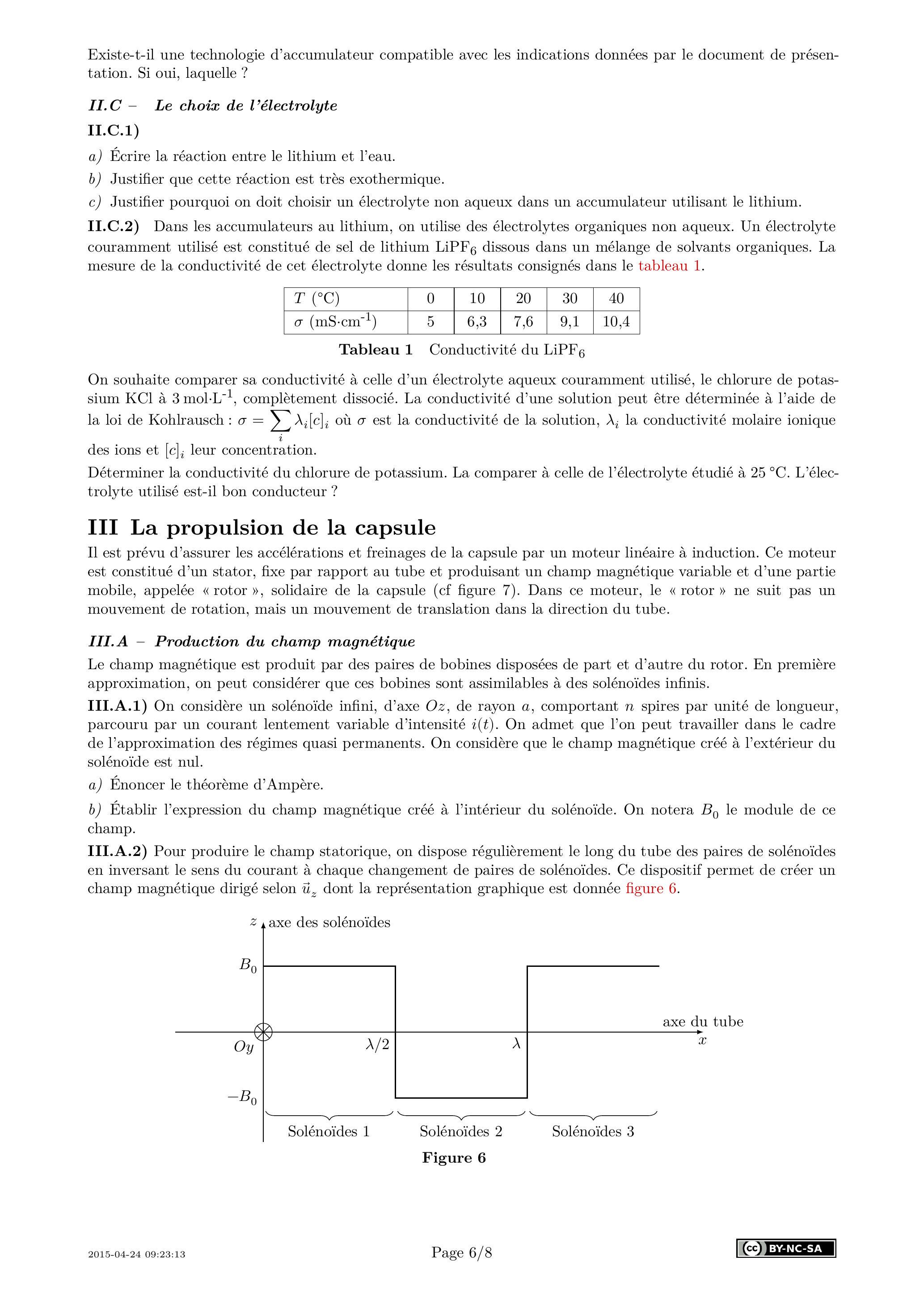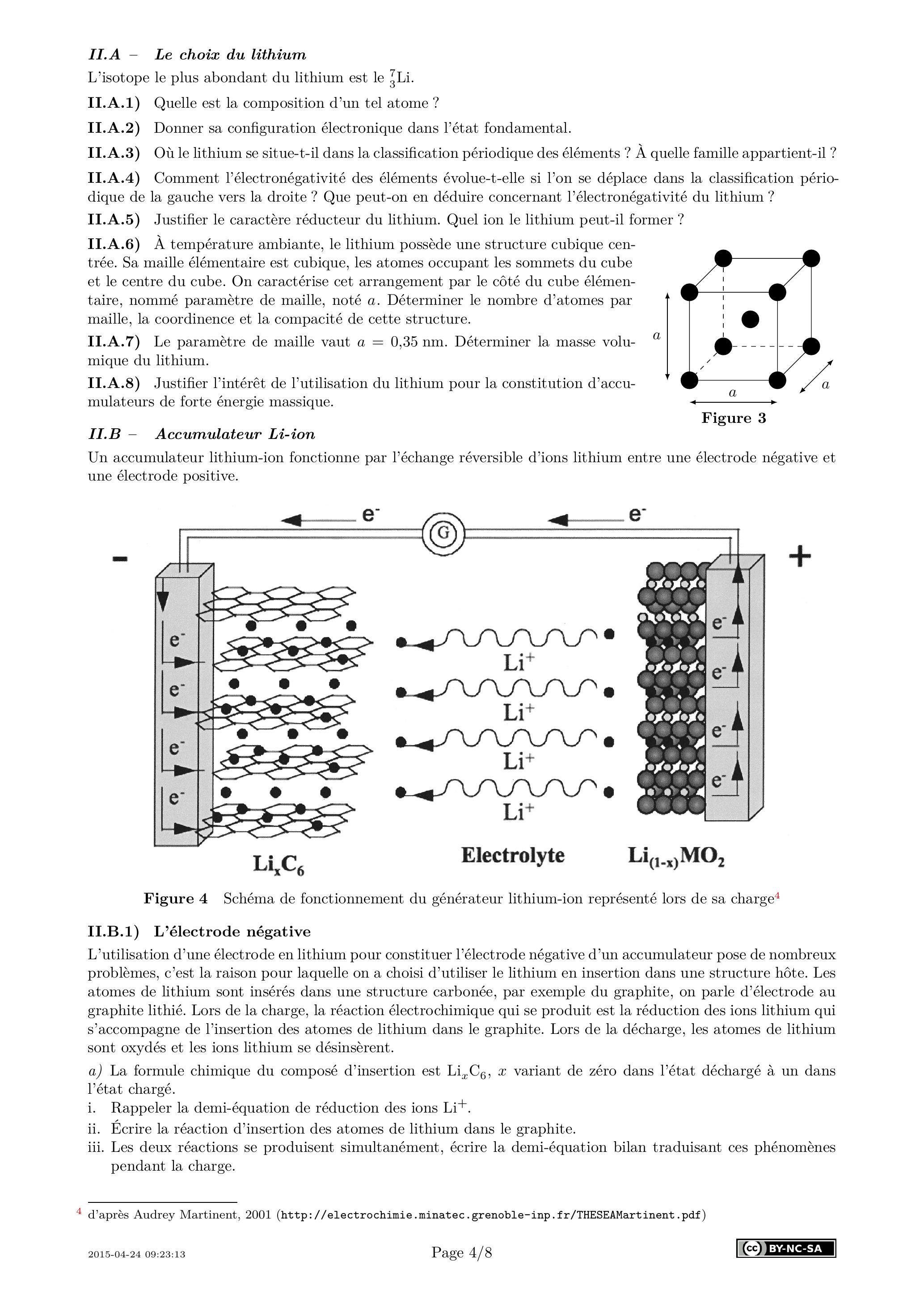 II.C.2) Dans les accumulateurs au lithium, on utilise des électrolytes organiques non aqueux. Un électrolyte couramment utilisé est constitué de sel de lithium