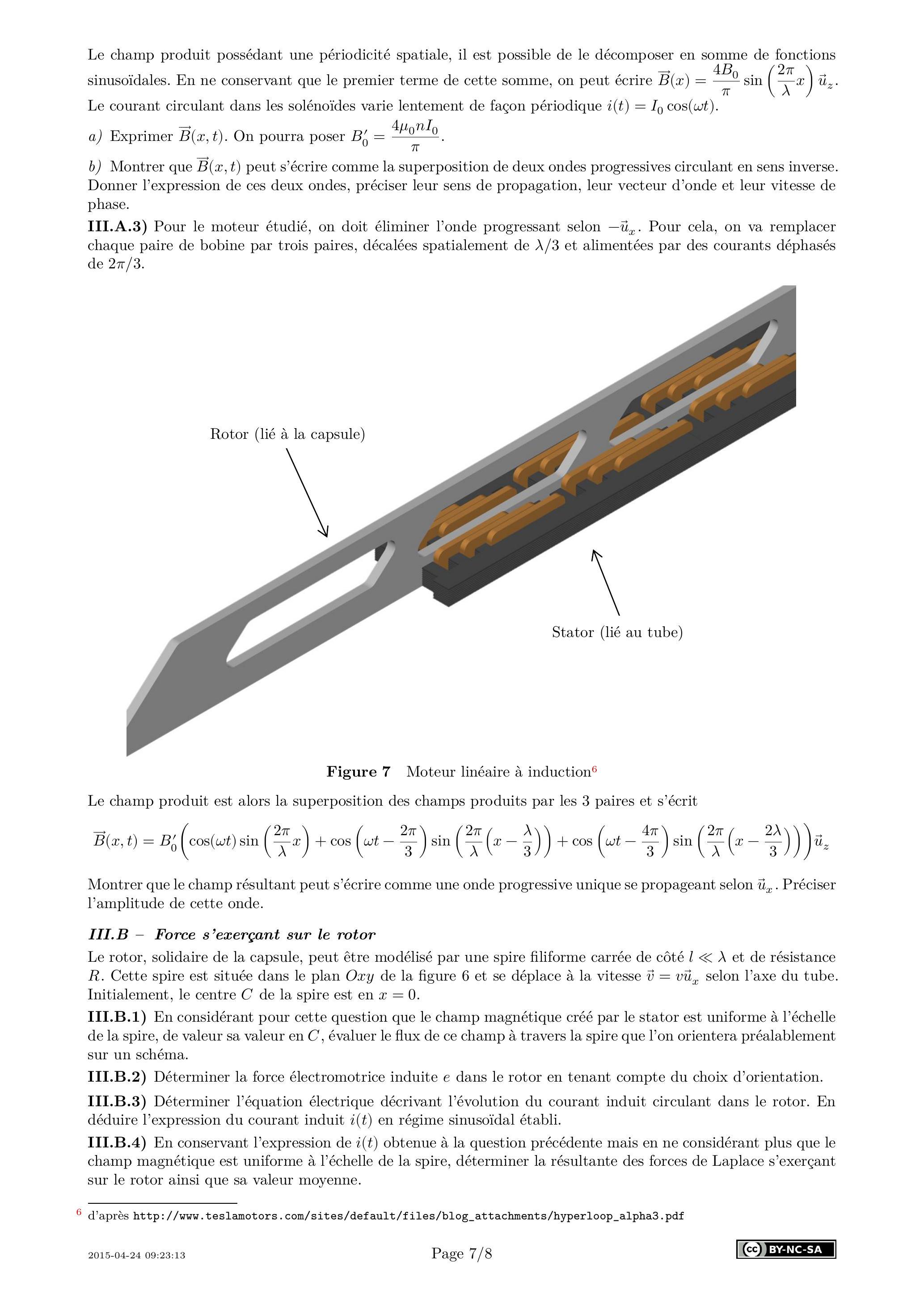 III.B.1) En considérant pour cette question que le champ magnétique créé par le stator est uniforme à l'échelle de la spire, de valeur sa valeur en