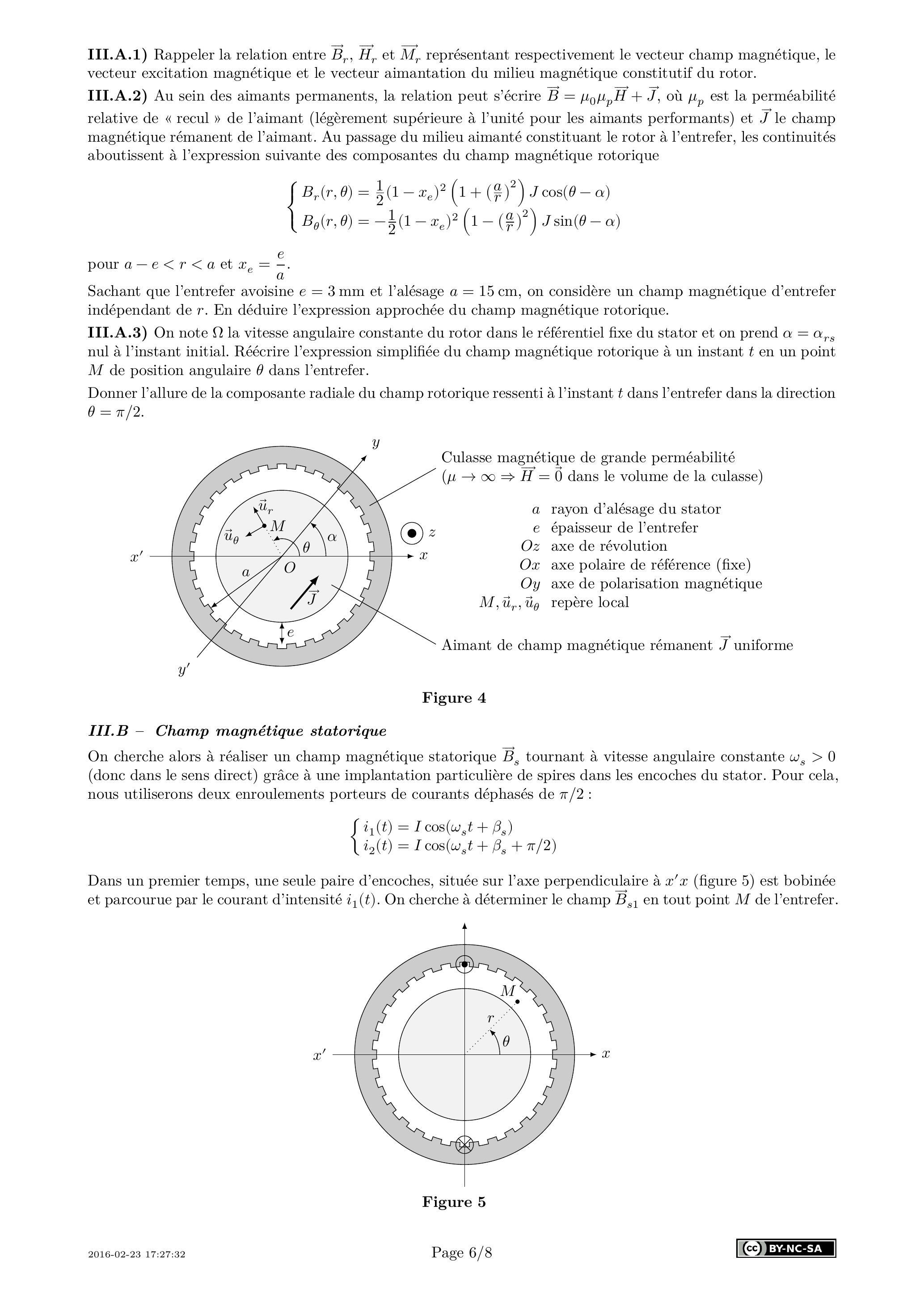 III.A.1) Rappeler la relation entre et représentant respectivement le vecteur champ magnétique, le vecteur excitation magnétique et le vecteur aimantation du milieu magnétique constitutif du rotor.