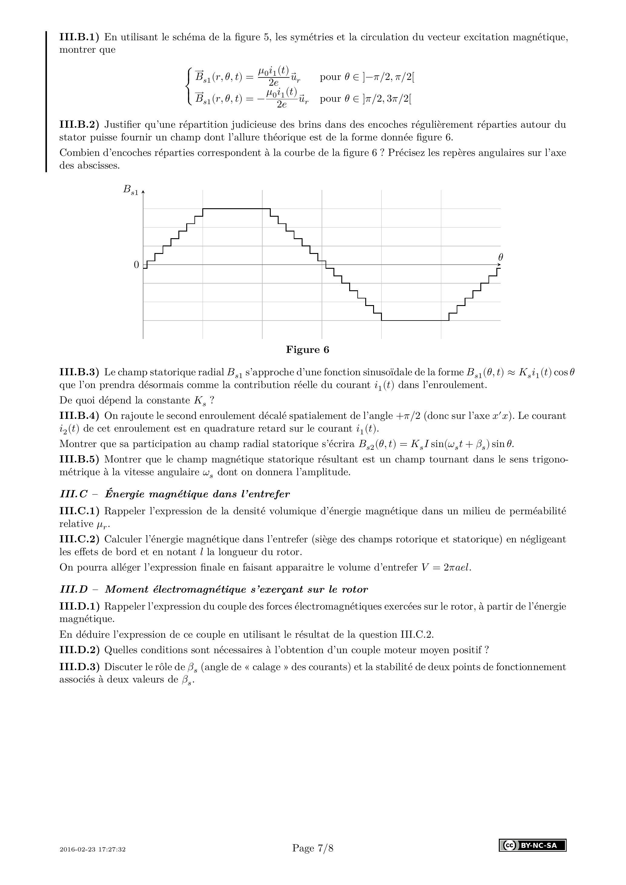 III.D.1) Rappeler l'expression du couple des forces électromagnétiques exercées sur le rotor, à partir de l'énergie magnétique.