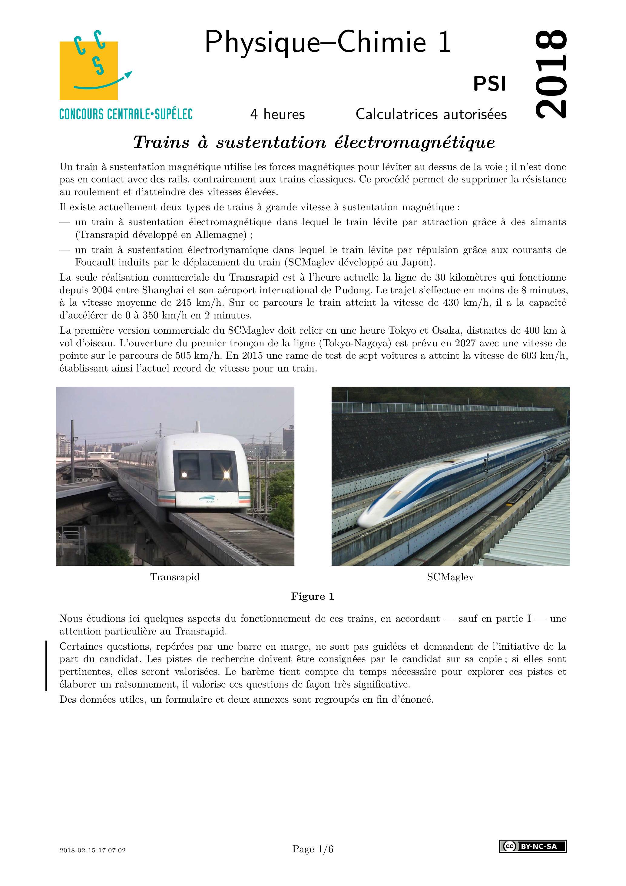 Centrale Physique Chimie 1 PSI 2018 - Version Web LaTeX | WikiPrépa | WikiPrépa