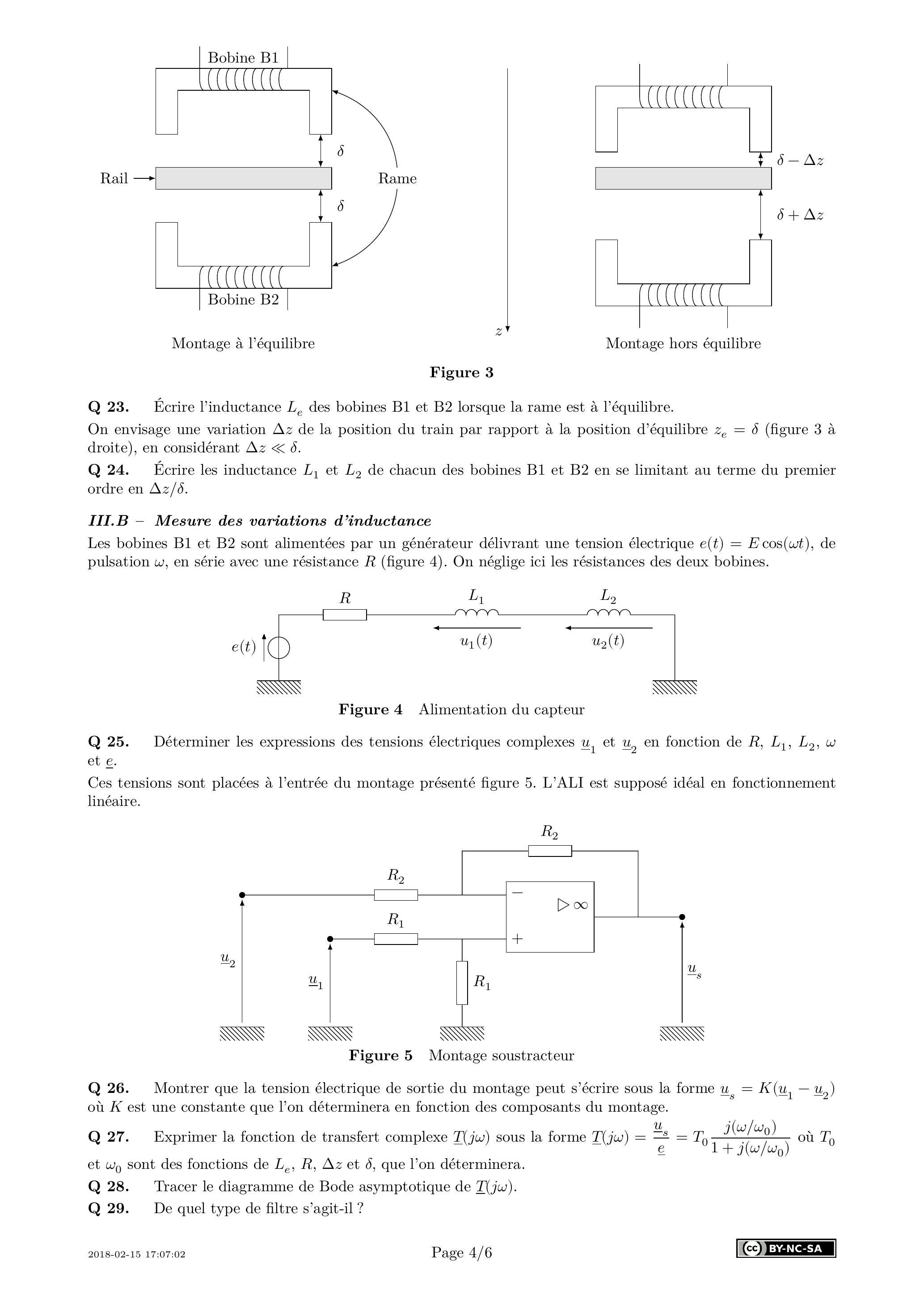 Q 23. Écrire l'inductance des bobines B 1 et B 2 lorsque la rame est à l'équilibre.