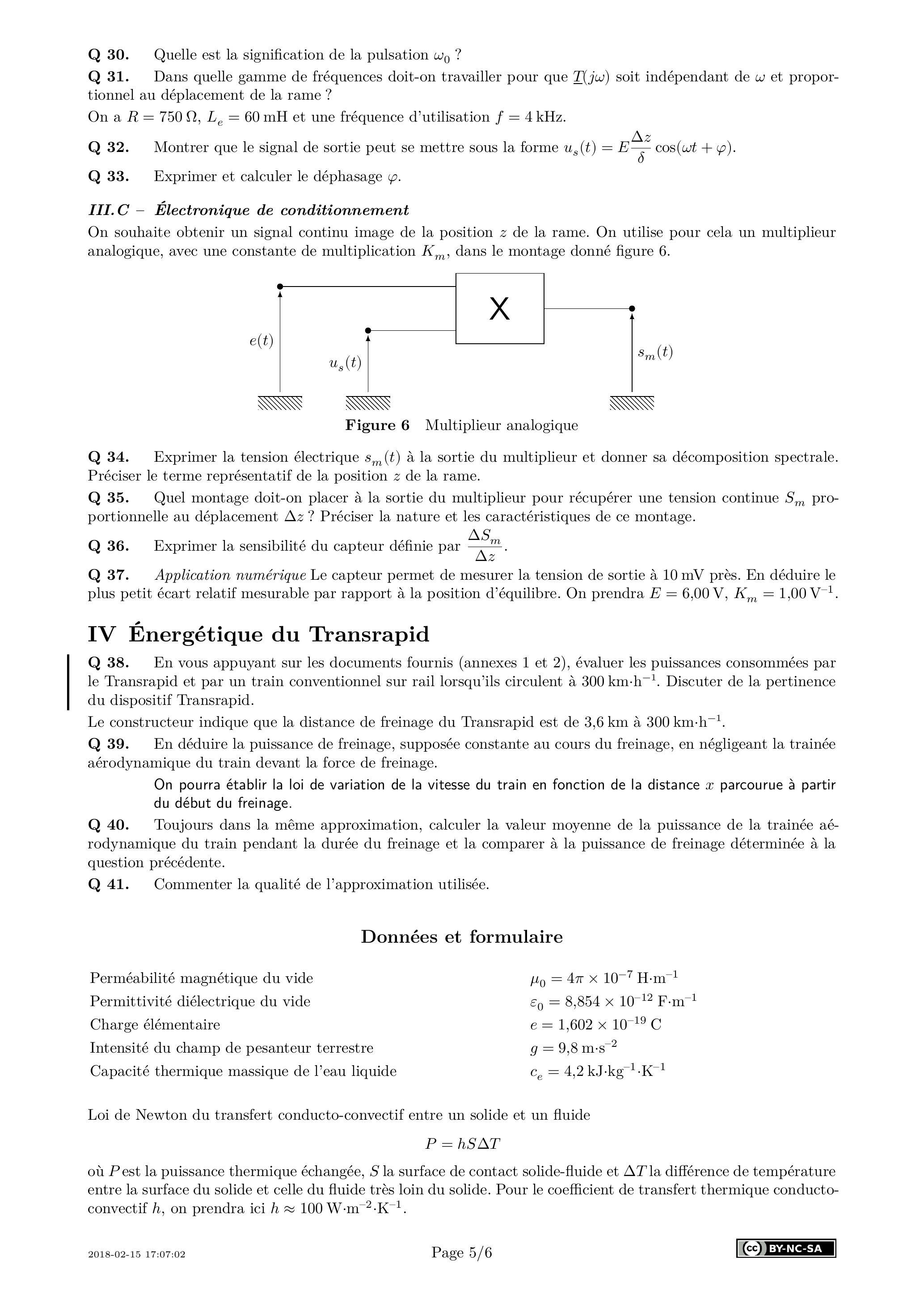 Q 31. Dans quelle gamme de fréquences doit-on travailler pour que soit indépendant de et proportionnel au déplacement de la rame ?