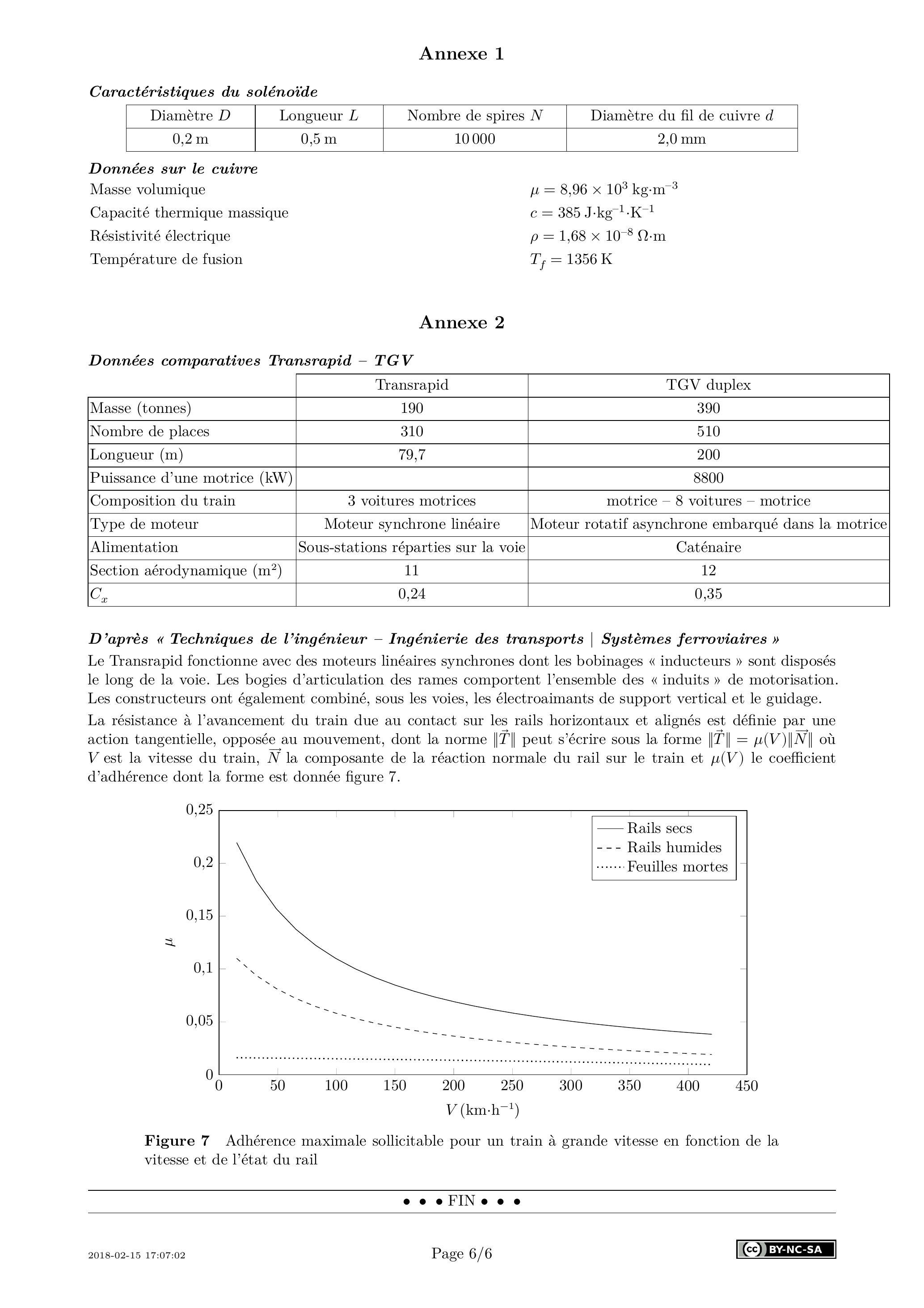 Q 38. En vous appuyant sur les documents fournis (annexes 1 et 2), évaluer les puissances consommées par le Transrapid et par un train conventionnel sur rail lorsqu'ils circulent à . Discuter de la pertinence du dispositif Transrapid.