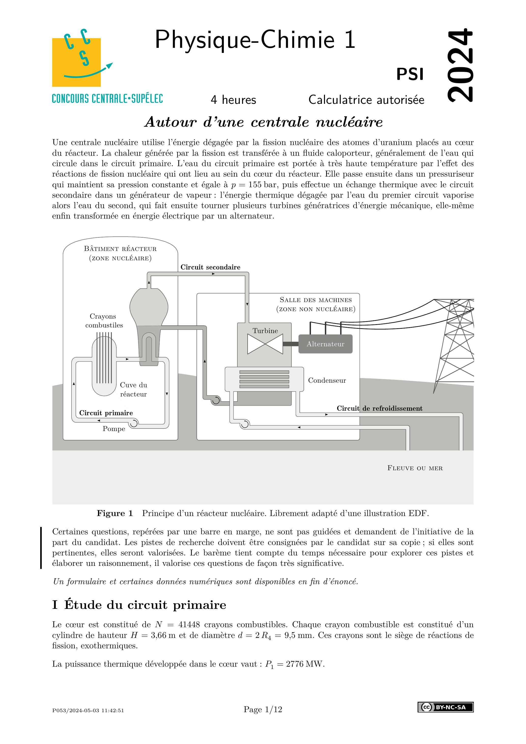 Centrale Physique Chimie 1 PSI 2024 - Version Web LaTeX | WikiPrépa | WikiPrépa