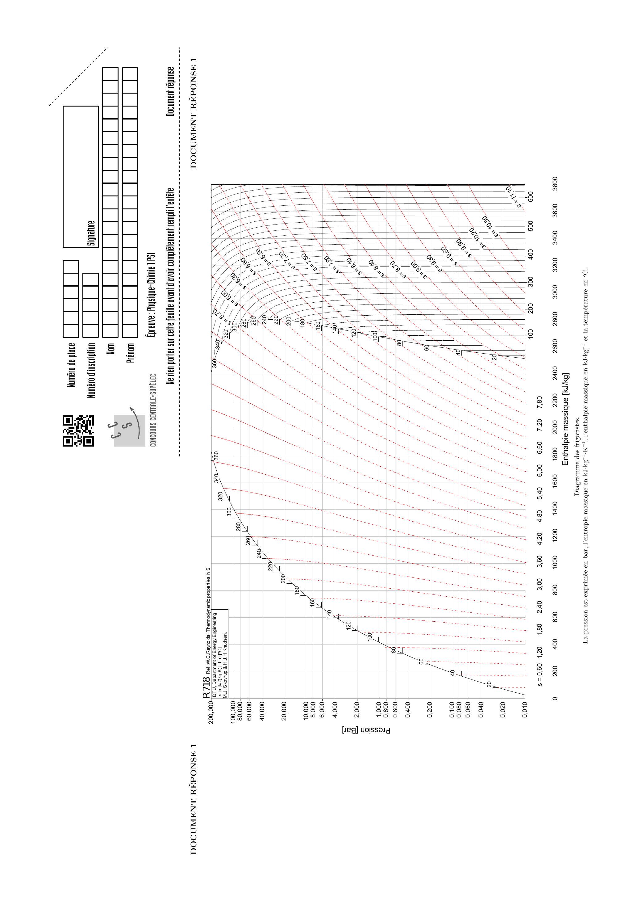 Q 18. Donner le nom des différentes courbes du diagramme des frigoristes ( ) du document réponse 1 et y représenter précisément le cycle décrit par le fluide.