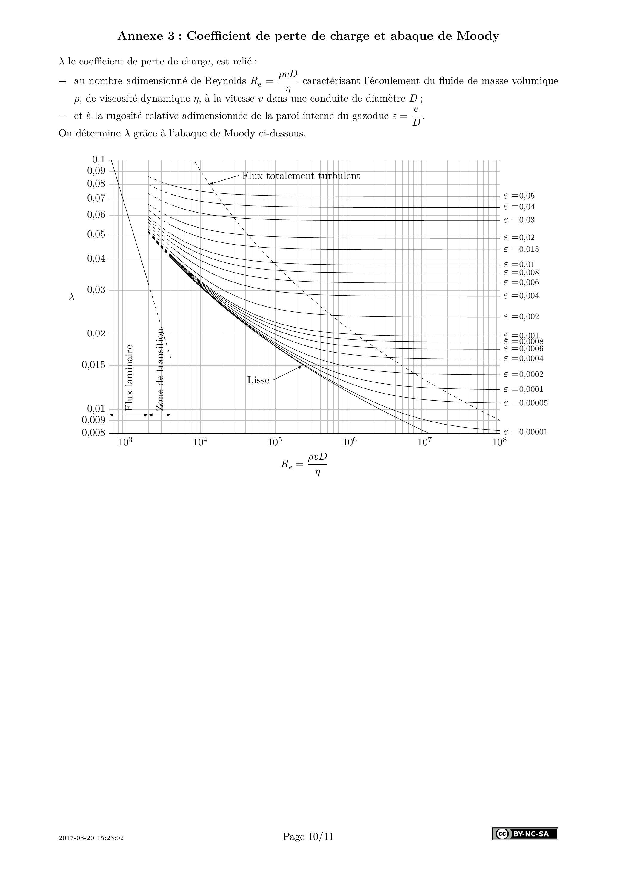 On détermine grâce à l'abaque de Moody ci-dessous.
