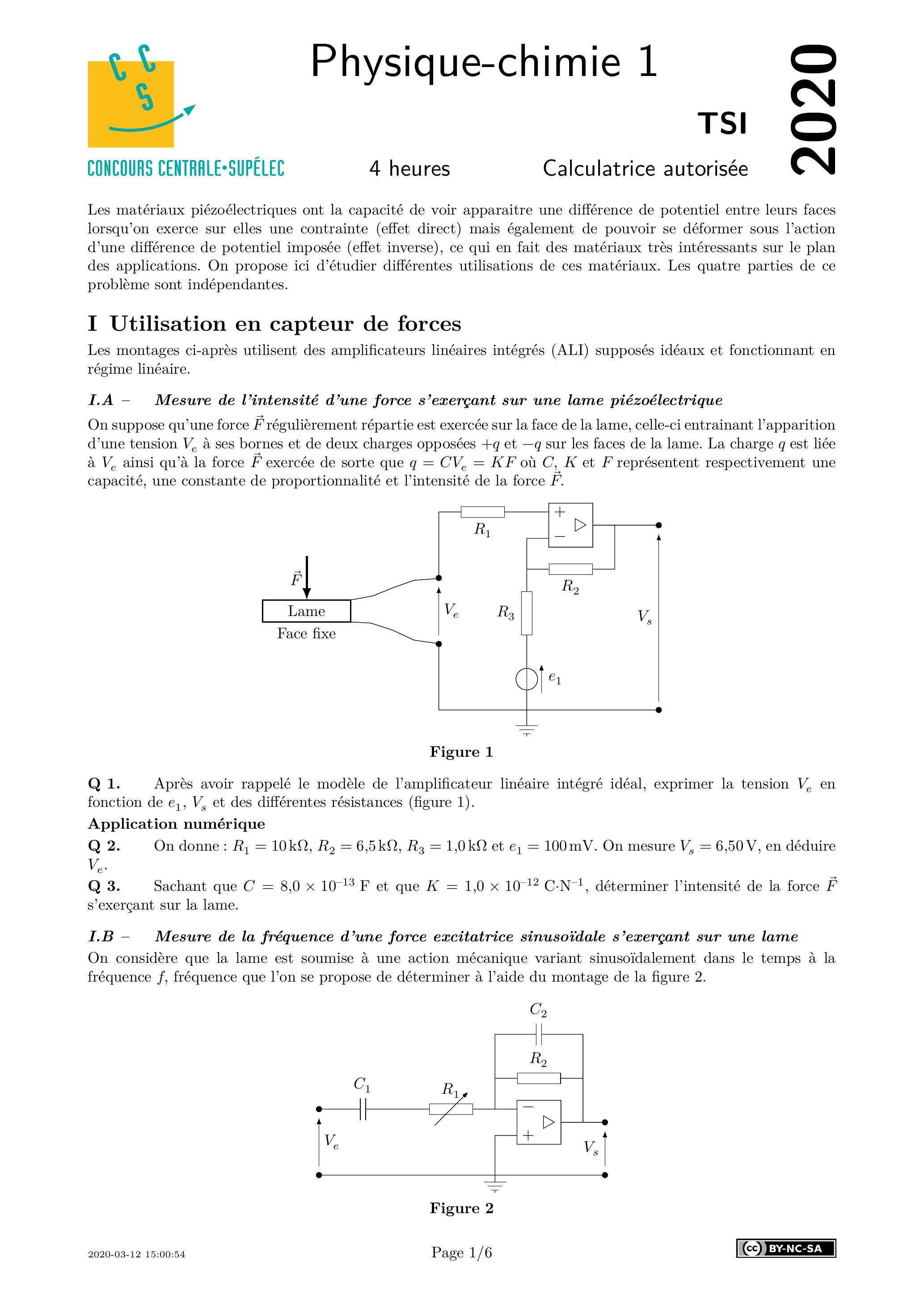 Centrale Physique Chimie 1 TSI 2020 - Version Web LaTeX | WikiPrépa | WikiPrépa