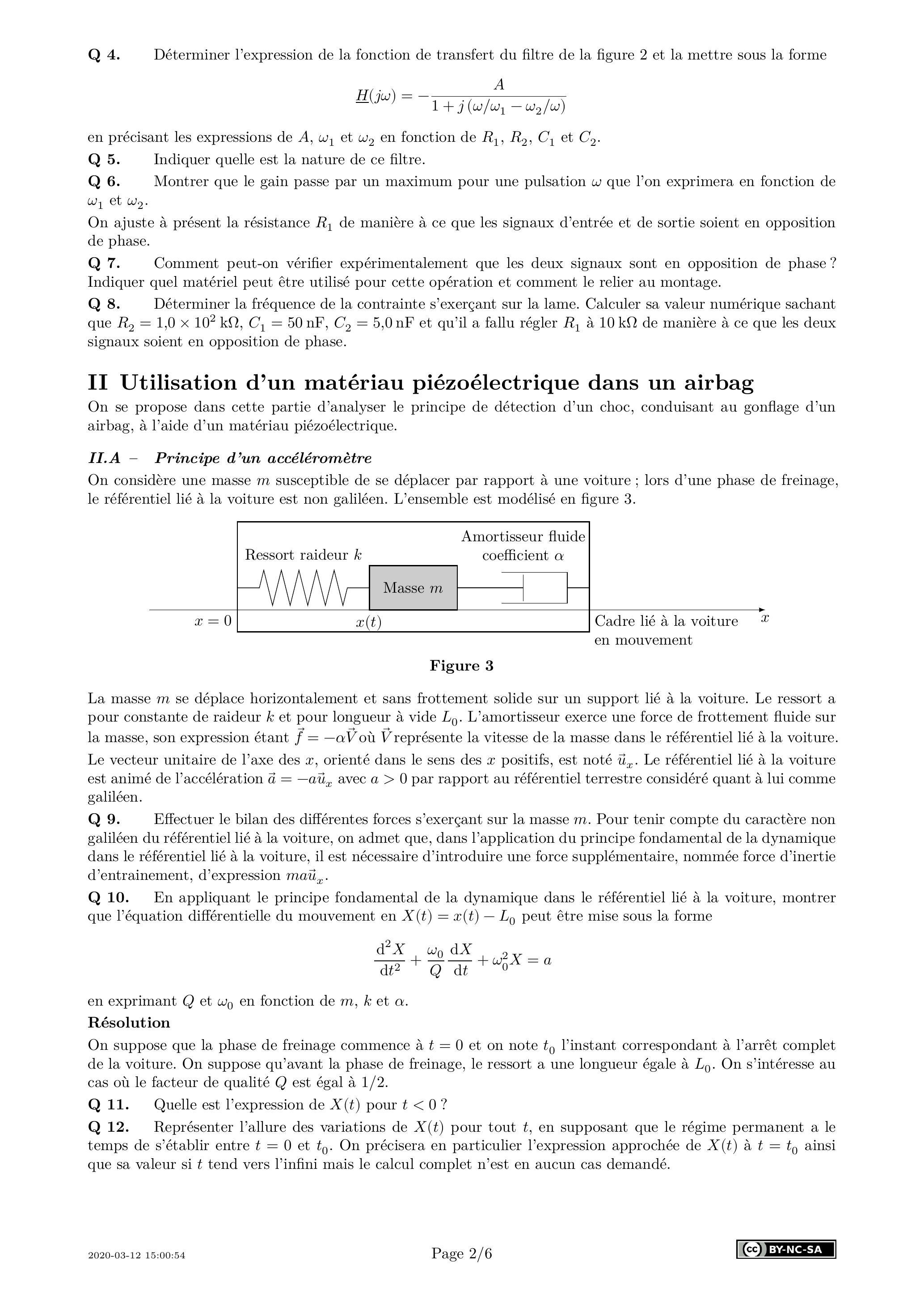 Q 17. Les variations de la tension aux bornes de la lame sont analogues à celles de obtenues à la question 12, le facteur de qualité étant égal à . Justifier le choix de ce coefficient et préciser quel serait le problème si le régime permanent n'était pas atteint entre et .
