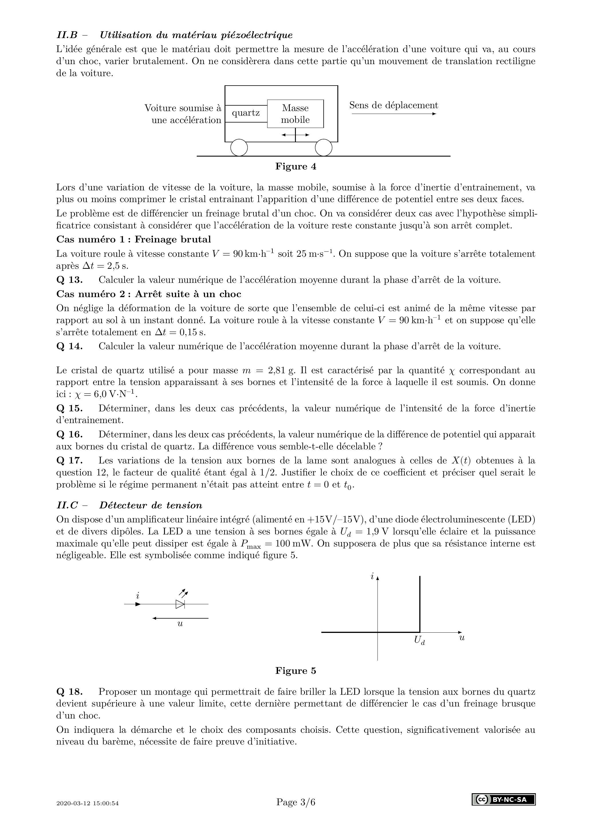 L'idée générale est que le matériau doit permettre la mesure de l'accélération d'une voiture qui va, au cours d'un choc, varier brutalement. On ne considèrera dans cette partie qu'un mouvement de translation rectiligne de la voiture.