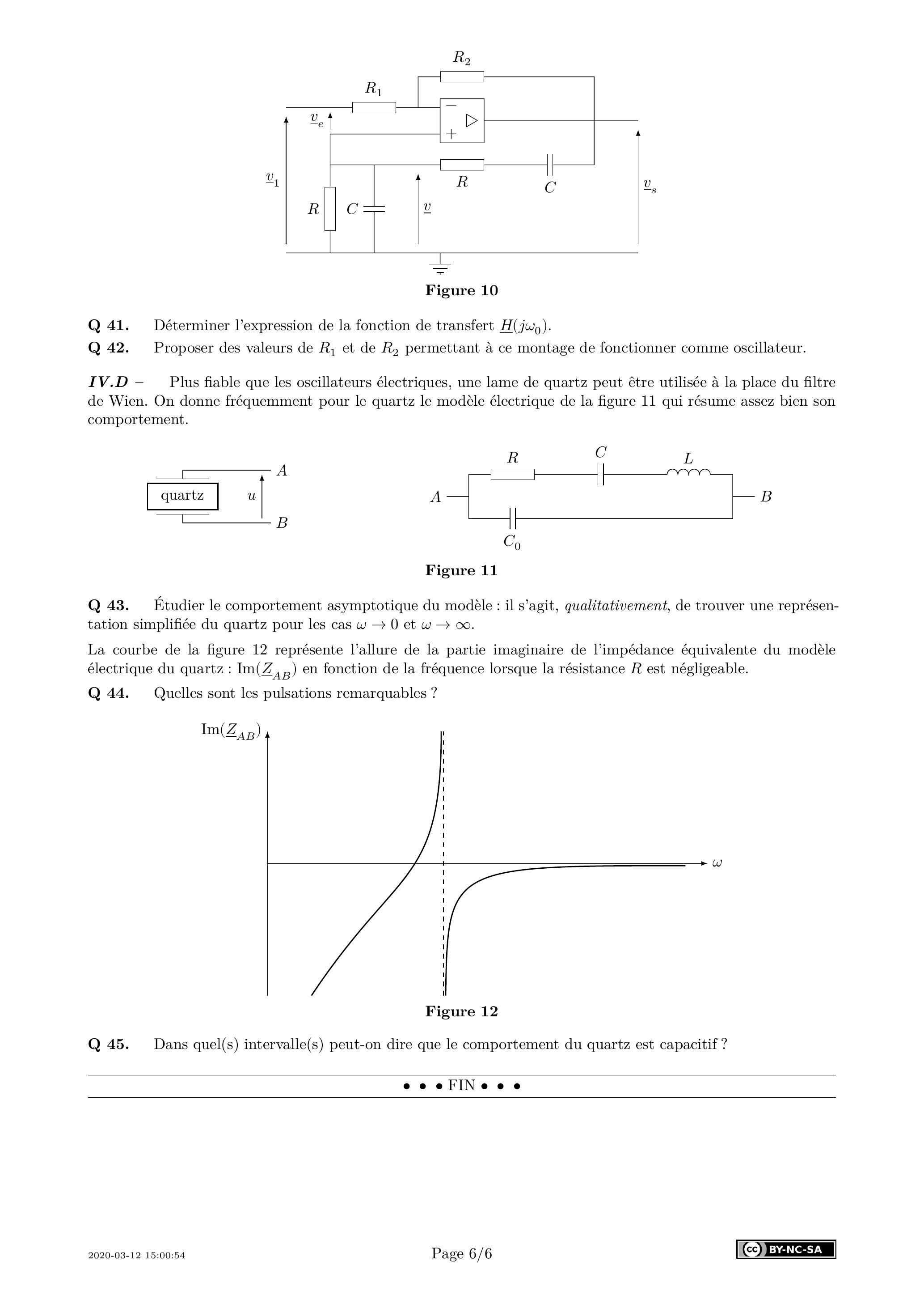 Q 31. Donner une relation vérifiée par et qui permette d'avoir un oscillateur.