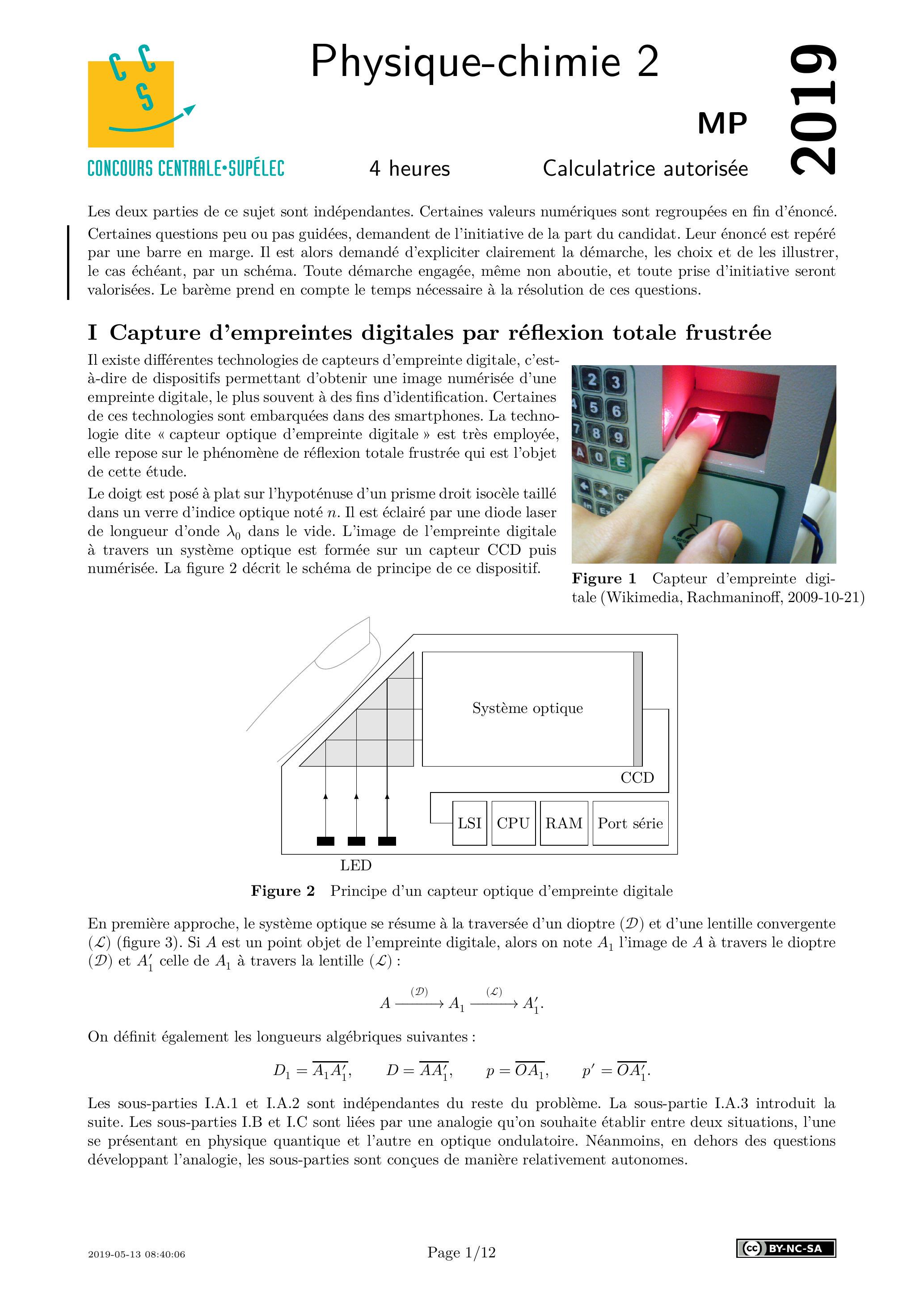 Centrale Physique Chimie 2 MP 2019 - Version Web LaTeX | WikiPrépa | WikiPrépa