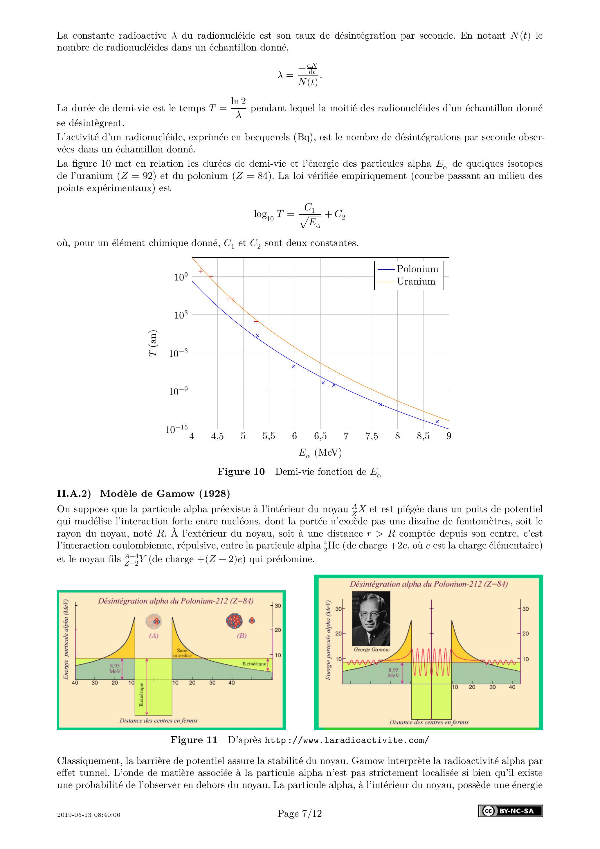 La figure 10 met en relation les durées de demi-vie et l'énergie des particules alpha de quelques isotopes de l'uranium et du polonium . La loi vérifiée empiriquement (courbe passant au milieu des points expérimentaux) est