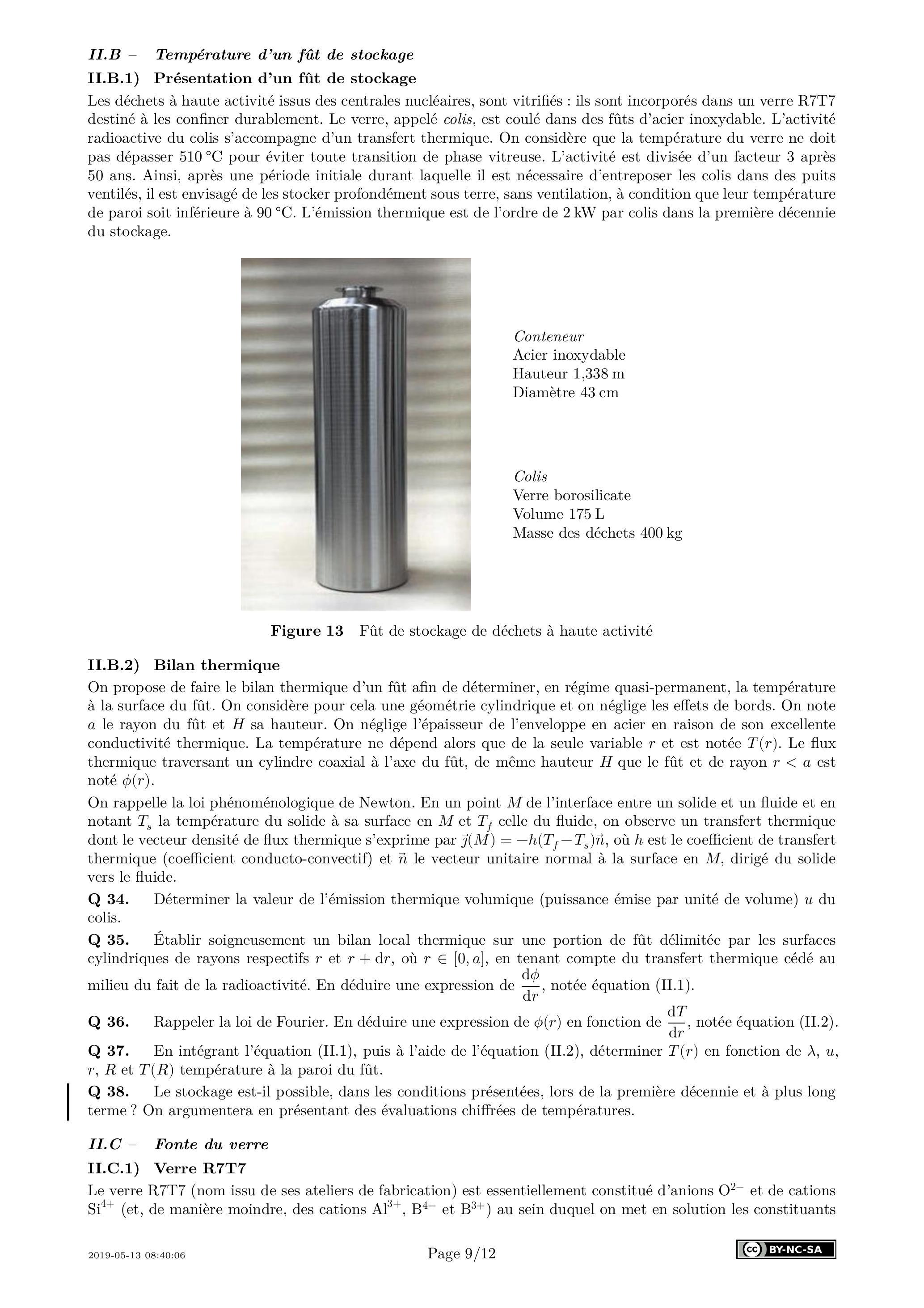 Q 34. Déterminer la valeur de l'émission thermique volumique (puissance émise par unité de volume) u du colis.