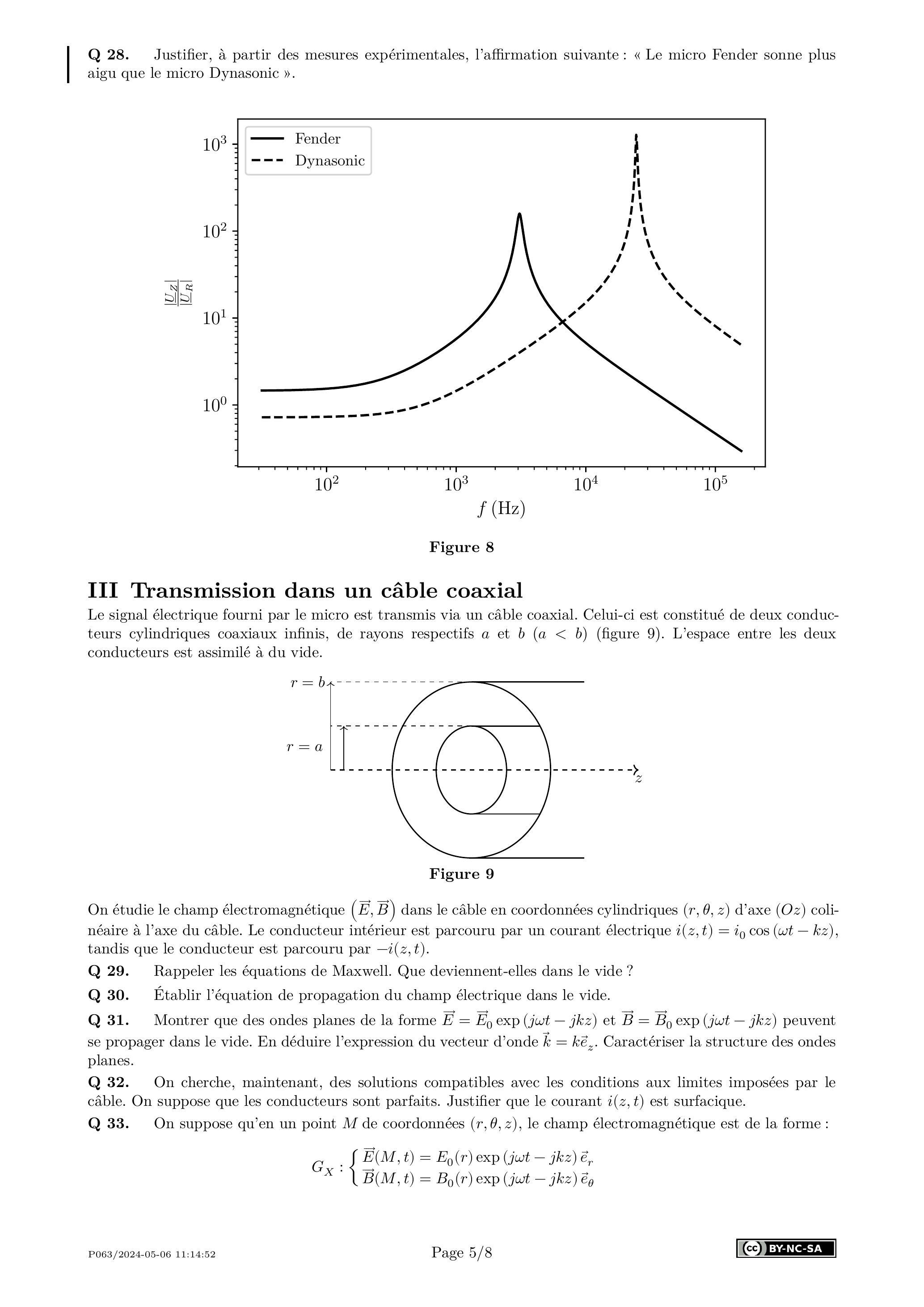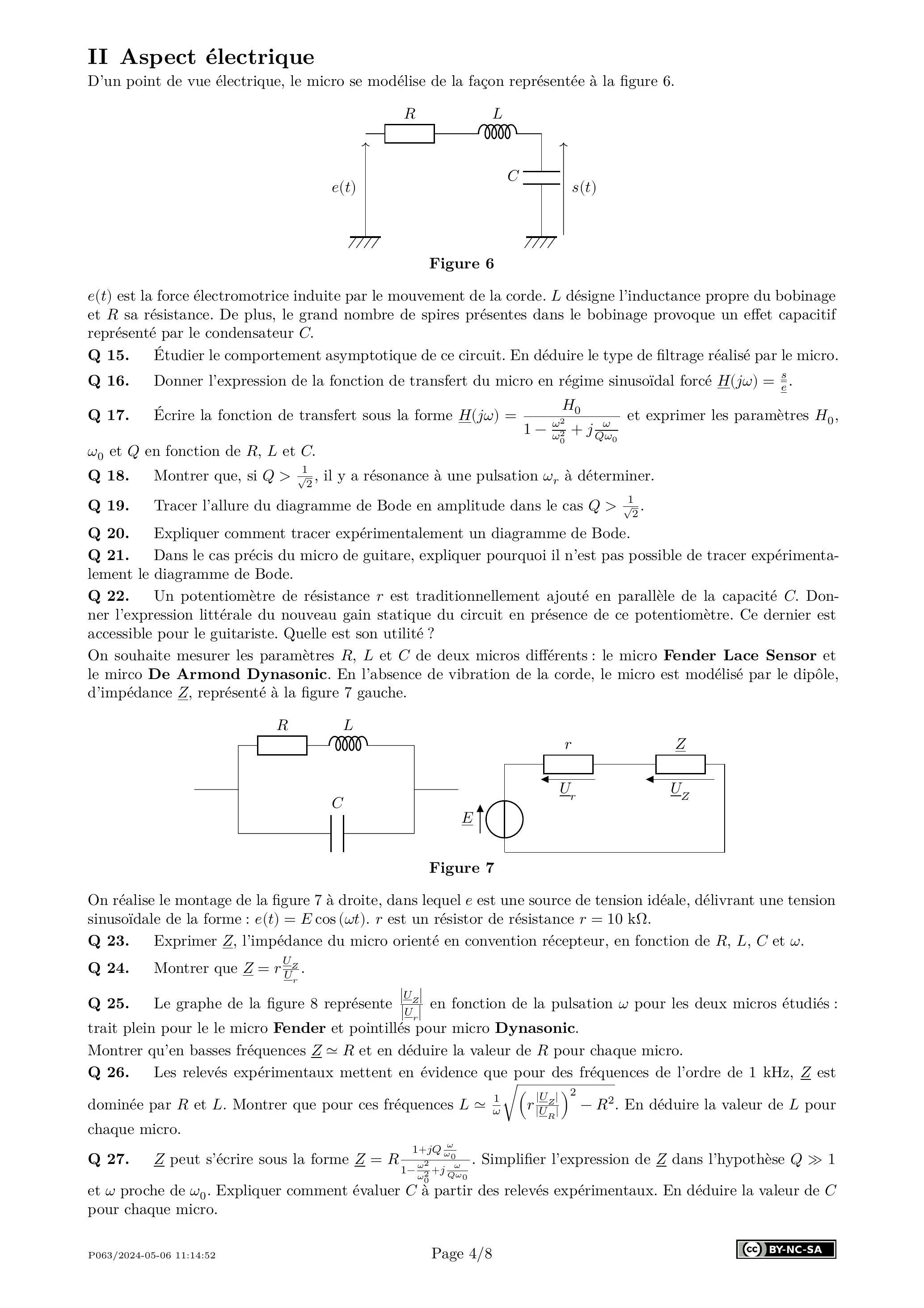 Q 21. Dans le cas précis du micro de guitare, expliquer pourquoi il n'est pas possible de tracer expérimentalement le diagramme de Bode.
