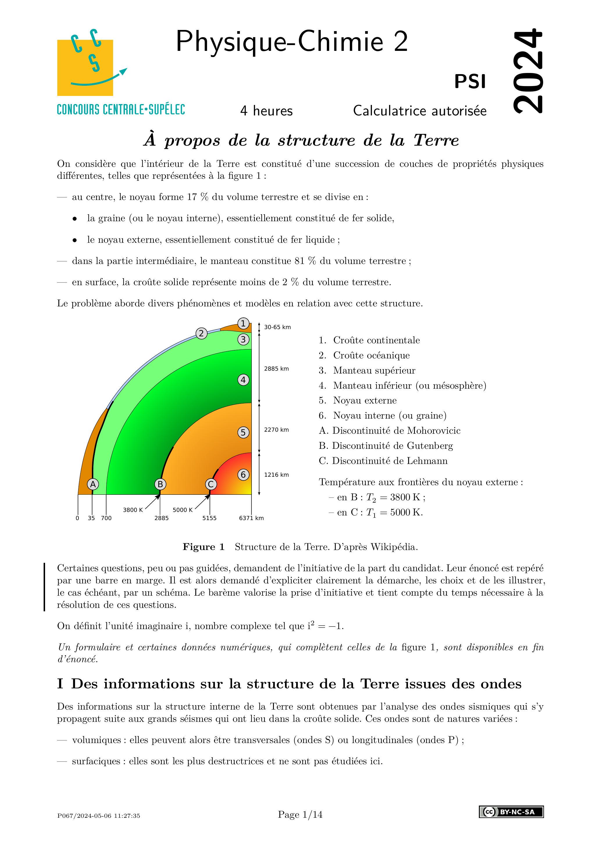 Centrale Physique Chimie 2 PSI 2024 - Version Web LaTeX | WikiPrépa | WikiPrépa