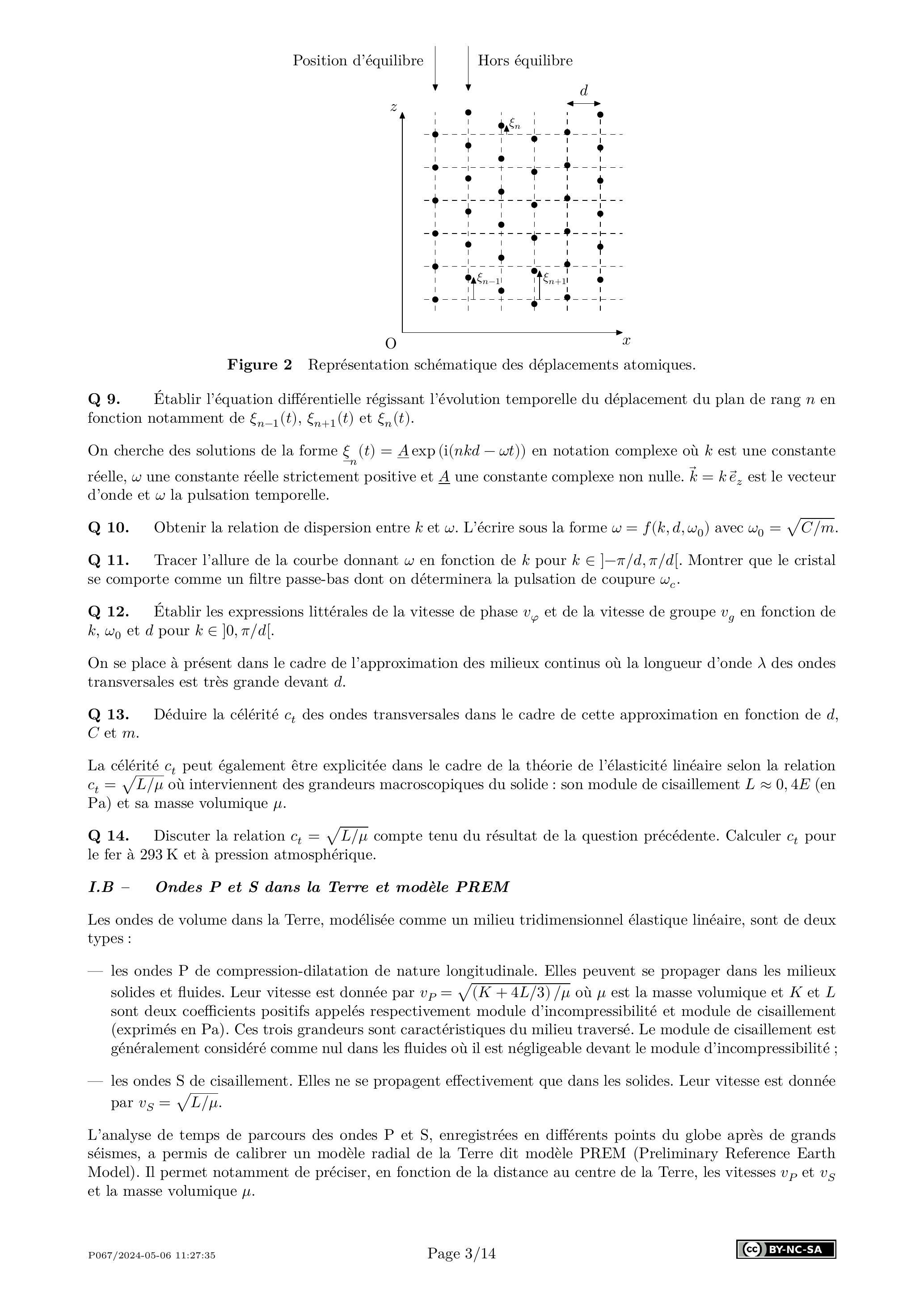 Q 10. Obtenir la relation de dispersion entre et . L'écrire sous la forme avec .